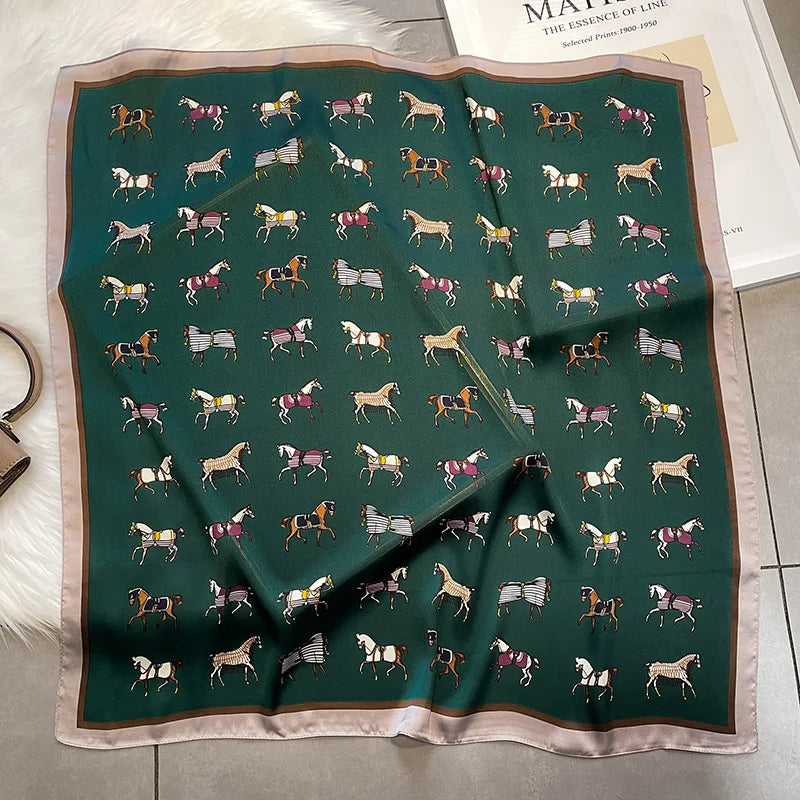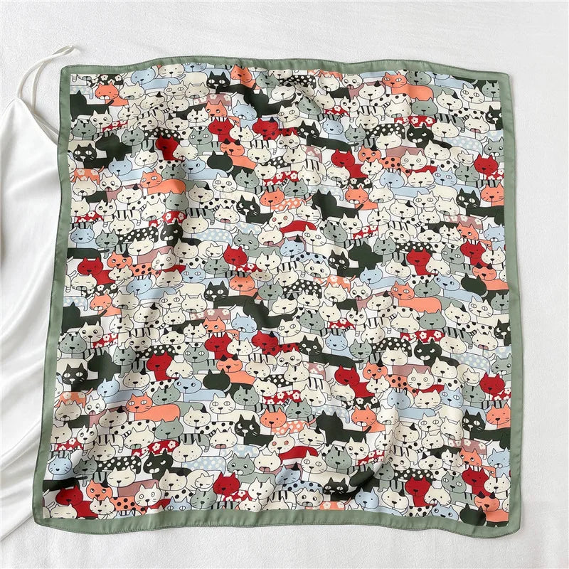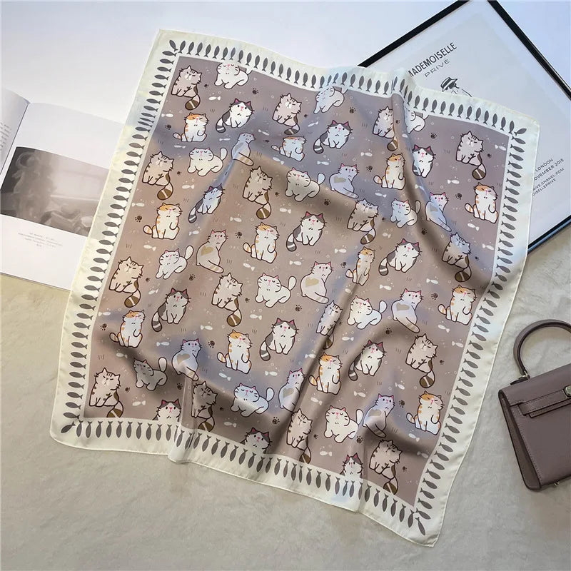 Luxury Hijab Silk Shawl and Wrap Cute Cat Print Scarf for Women Neckerchief Hair Band Wrist Headband Bandana 2023 Echarpe