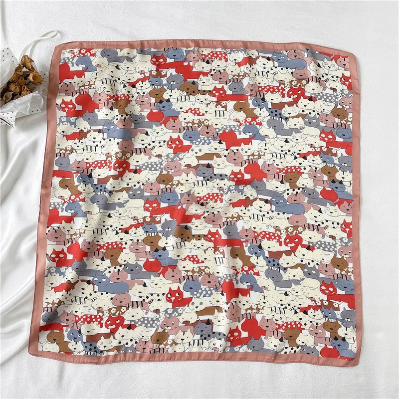 Luxury Hijab Silk Shawl and Wrap Cute Cat Print Scarf for Women Neckerchief Hair Band Wrist Headband Bandana 2023 Echarpe - 47 is backordered and will ship as soon as it is back in stock.