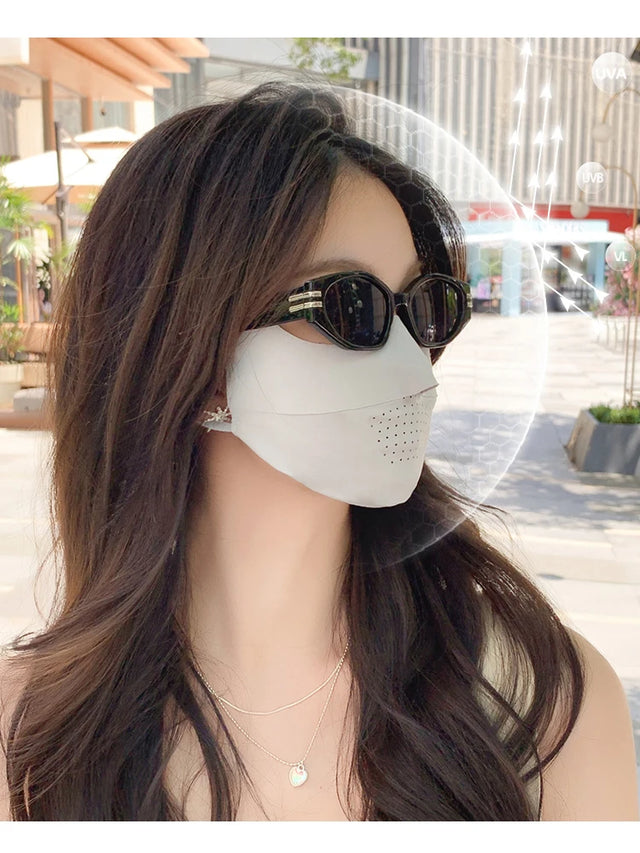2023 Ice Silk Breathable Sunscreen Mask Women Summer Full Face Eye Protection Anti-UV Sunshade Thin Face Mask