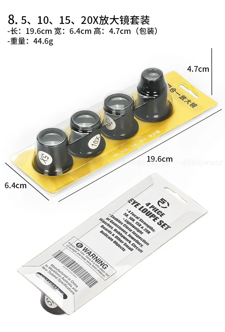 4/Set 3X 5X 10X 15X 20X Eyeglass Magnifier Eye Loupe Lens Portable Eyepiece Process Operation for Watchmaker Watch Repair Tools