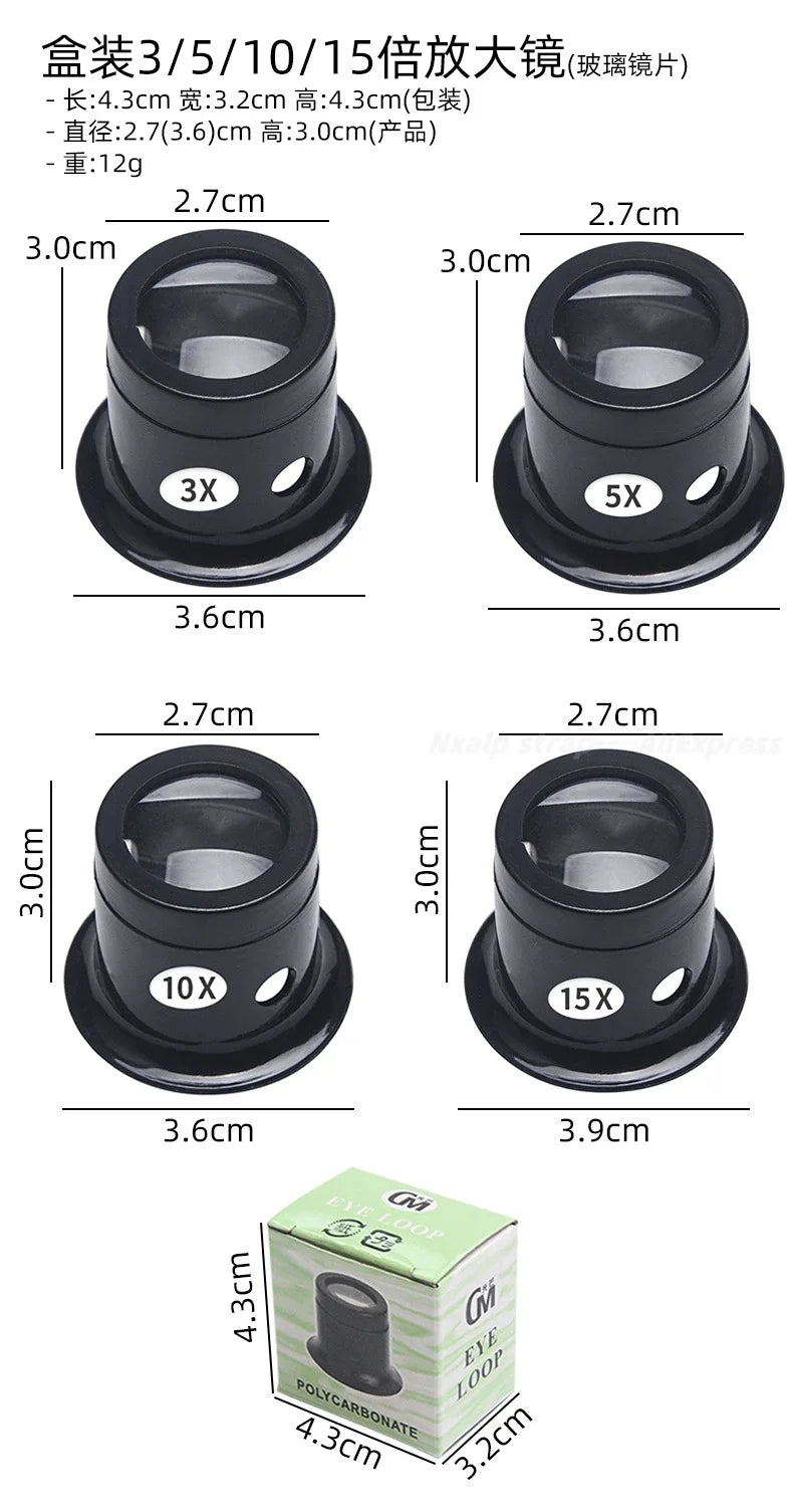 4/Set 3X 5X 10X 15X 20X Eyeglass Magnifier Eye Loupe Lens Portable Eyepiece Process Operation for Watchmaker Watch Repair Tools - 5X is backordered and will ship as soon as it is back in stock.