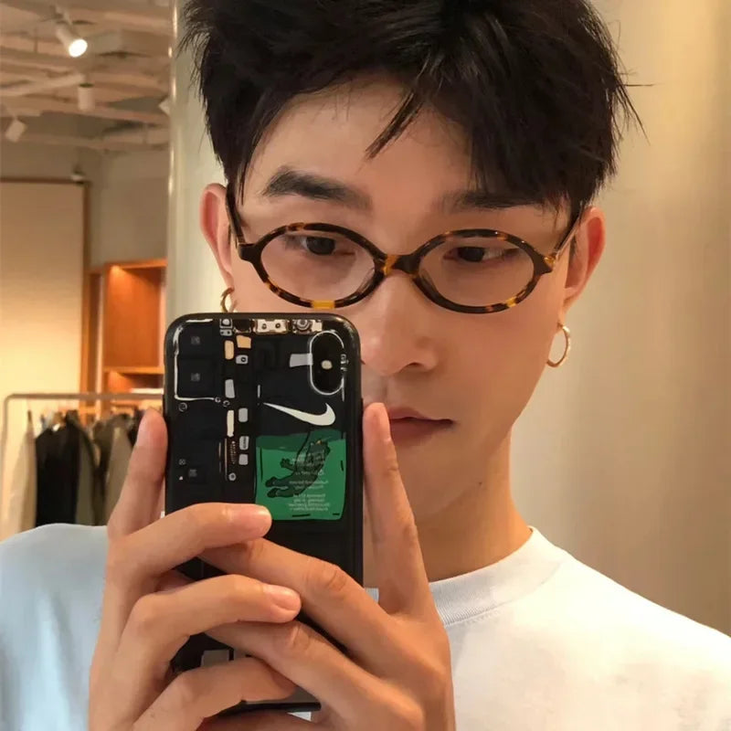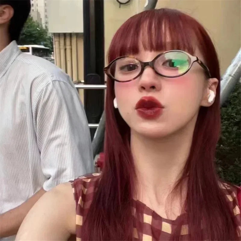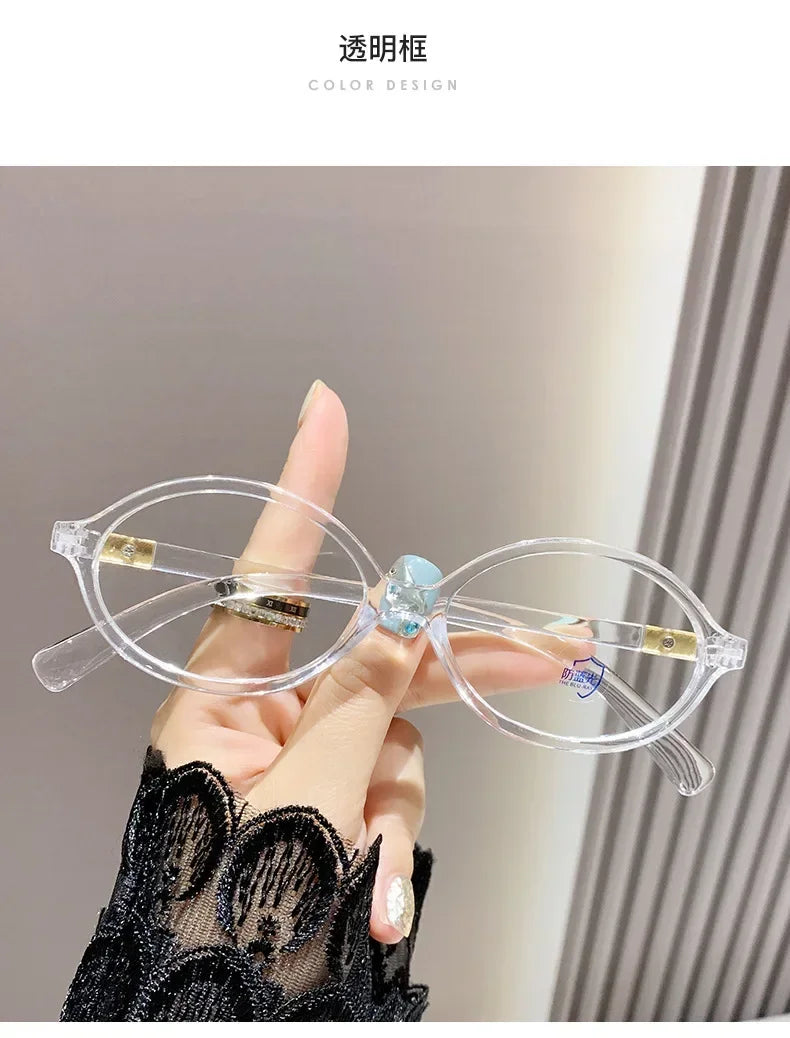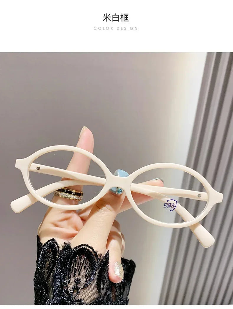 Elliptical Artistic Style Myopia Glasses Retro Small Frame Flat Lenses Ultra Light Finished Near Sight Eyewear Fashion Goggles
