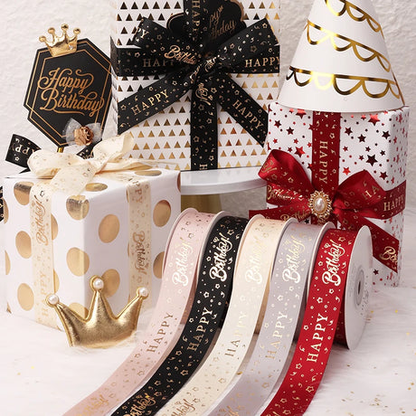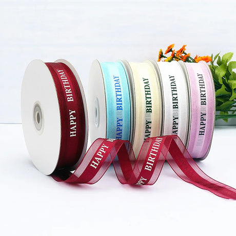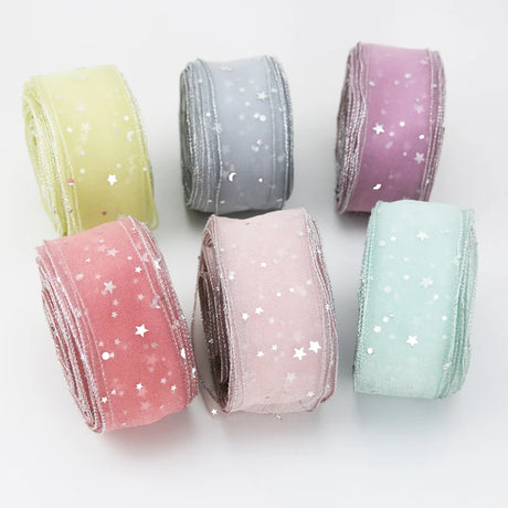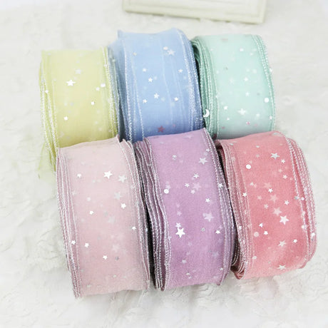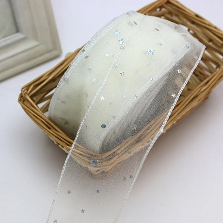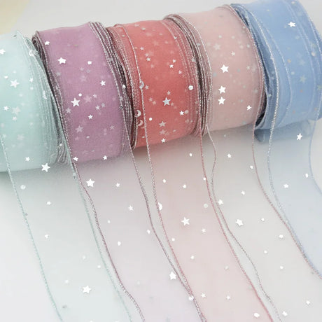 (5 Yards/roll) Stars Silk Organza ribbon Bow material for hair print flower decoration lace ribbons