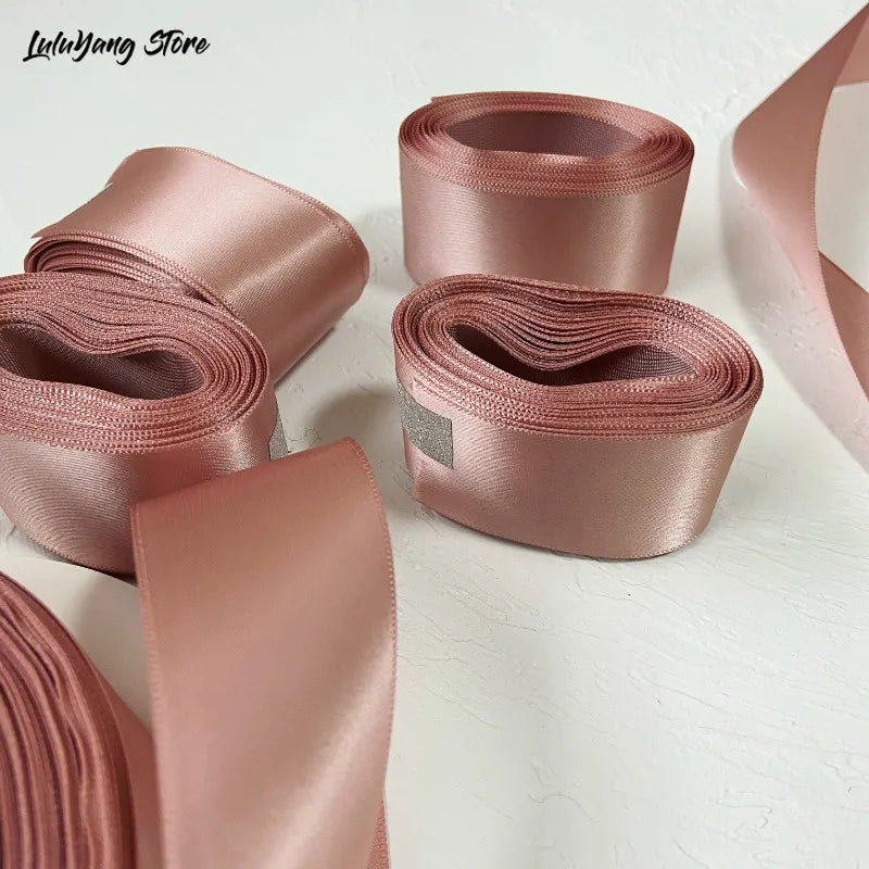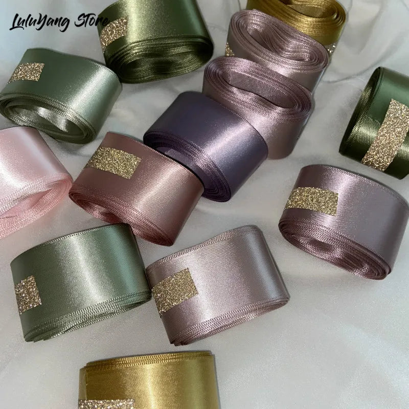 25 38mm 5Meters High Quality Single Face Satin Ribbon Gold Pink Ribbons For Party Wedding Decoration Bridal Rose White Gift Wide