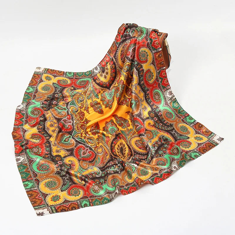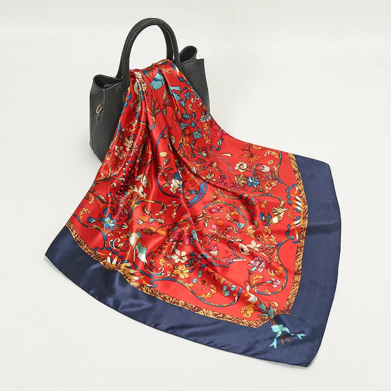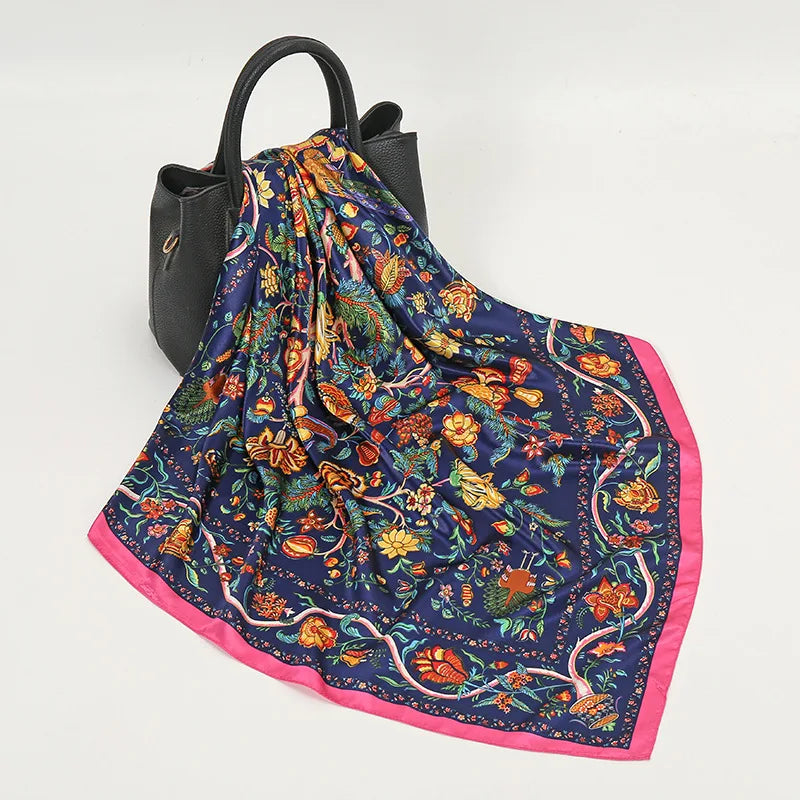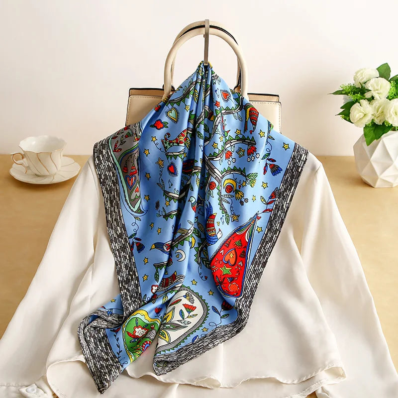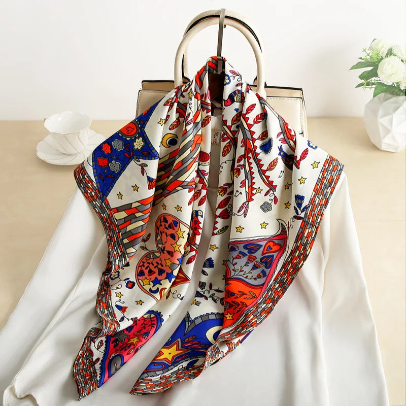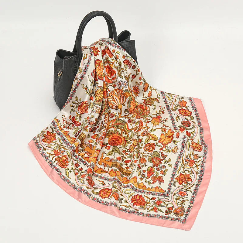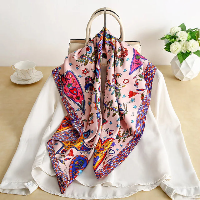 90*90cm Luxury Brand Women Silk Scarfs Print Square Scarves Spring Summer Shawls For Ladies