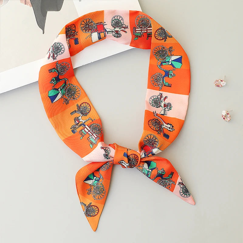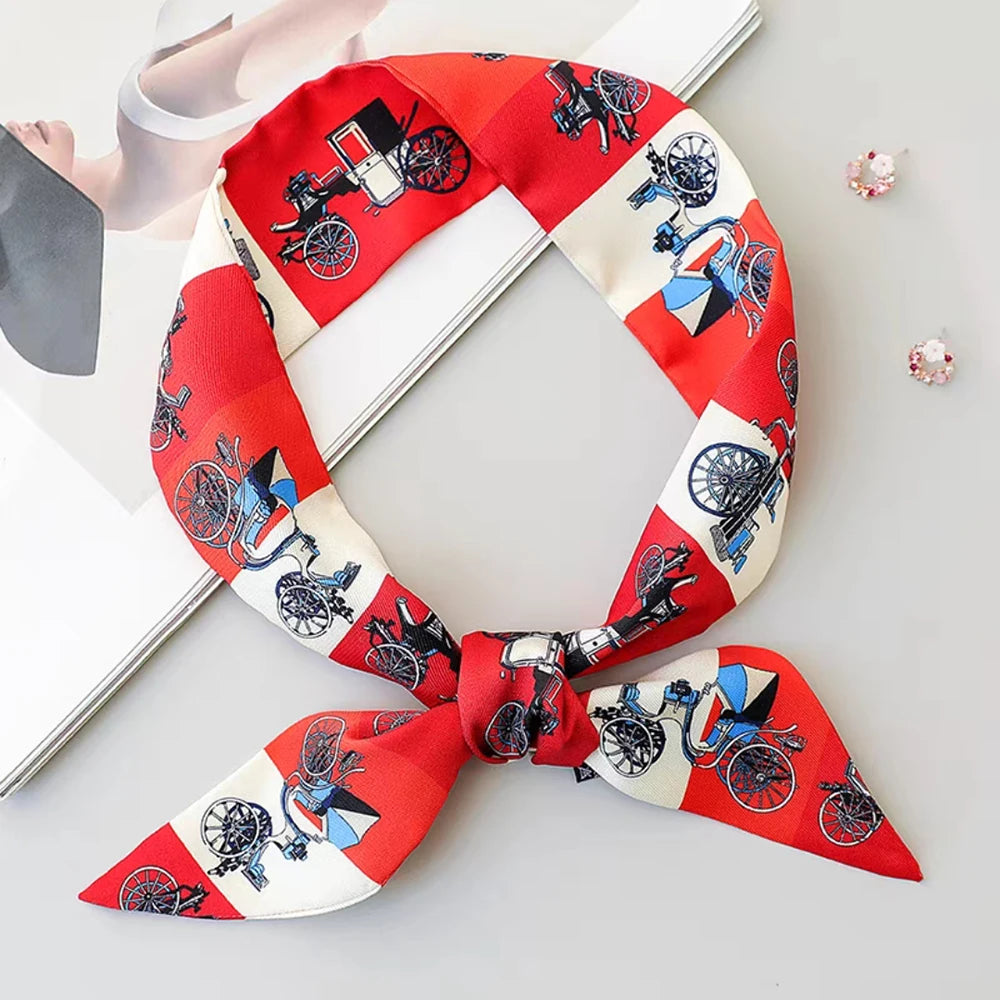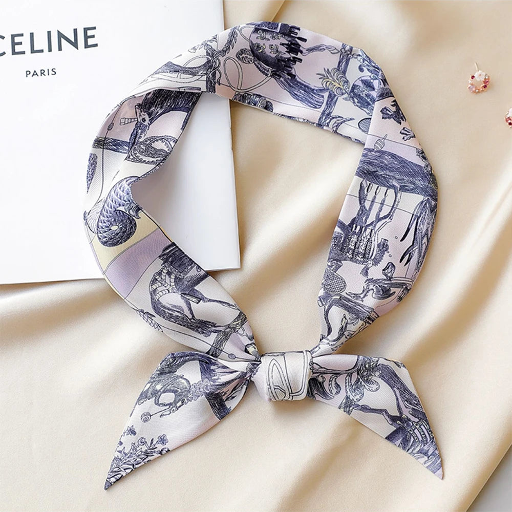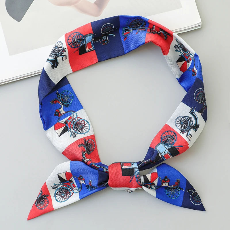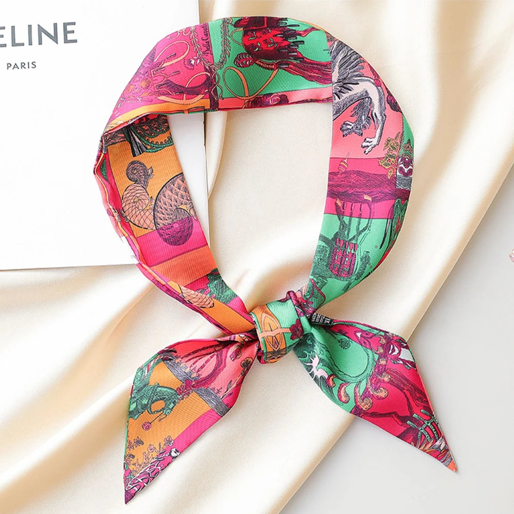 Spring New Versatile Style Knight Horse Lady Twill Decorative Small Silk Scarf Wrapping Bag Handle Ribbon Hair Band Small Scarf
