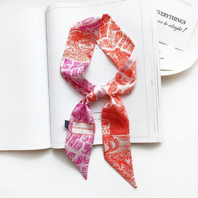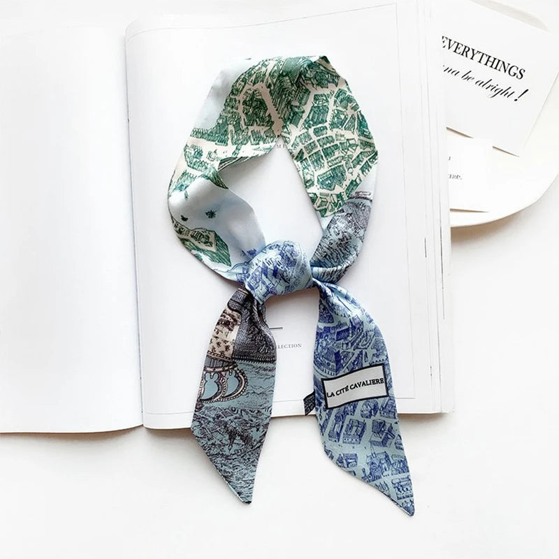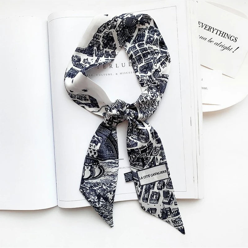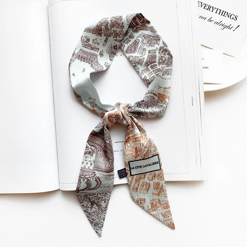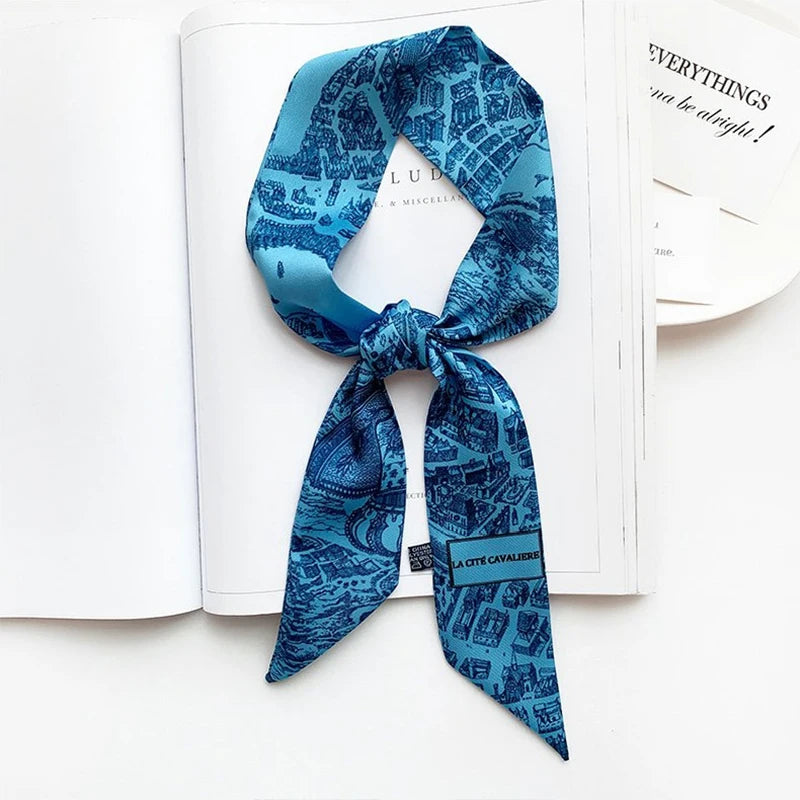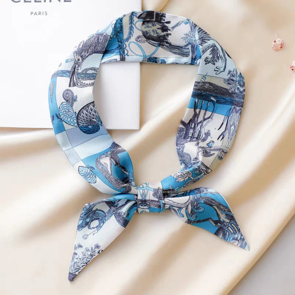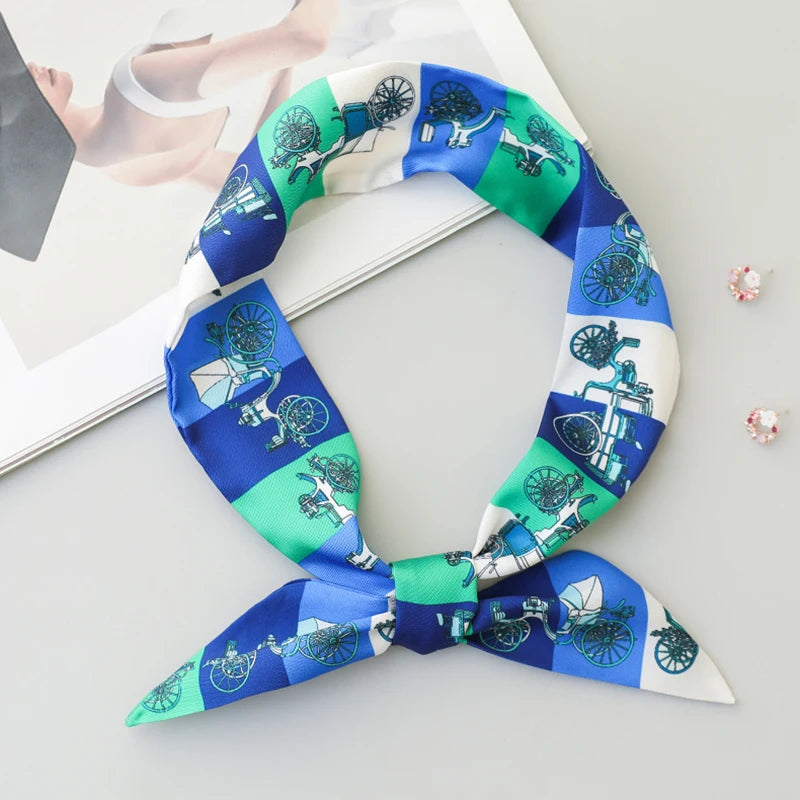 Spring New Versatile Style Knight Horse Lady Twill Decorative Small Silk Scarf Wrapping Bag Handle Ribbon Hair Band Small Scarf