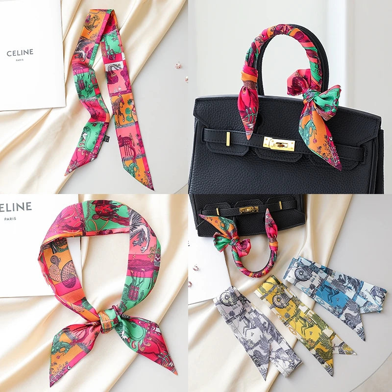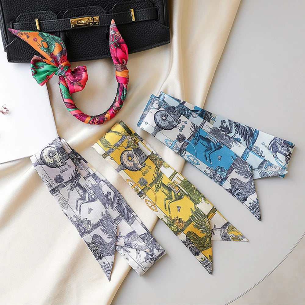 Spring New Versatile Style Knight Horse Lady Twill Decorative Small Silk Scarf Wrapping Bag Handle Ribbon Hair Band Small Scarf - 1 / 90cmX5cm / CHINA is backordered and will ship as soon as it is back in stock.
