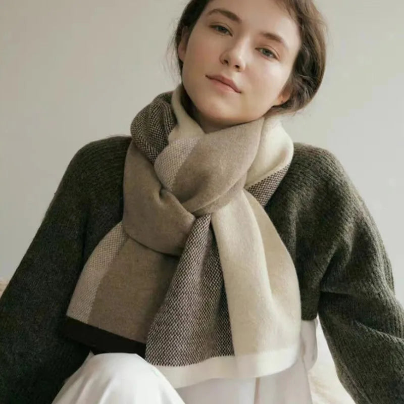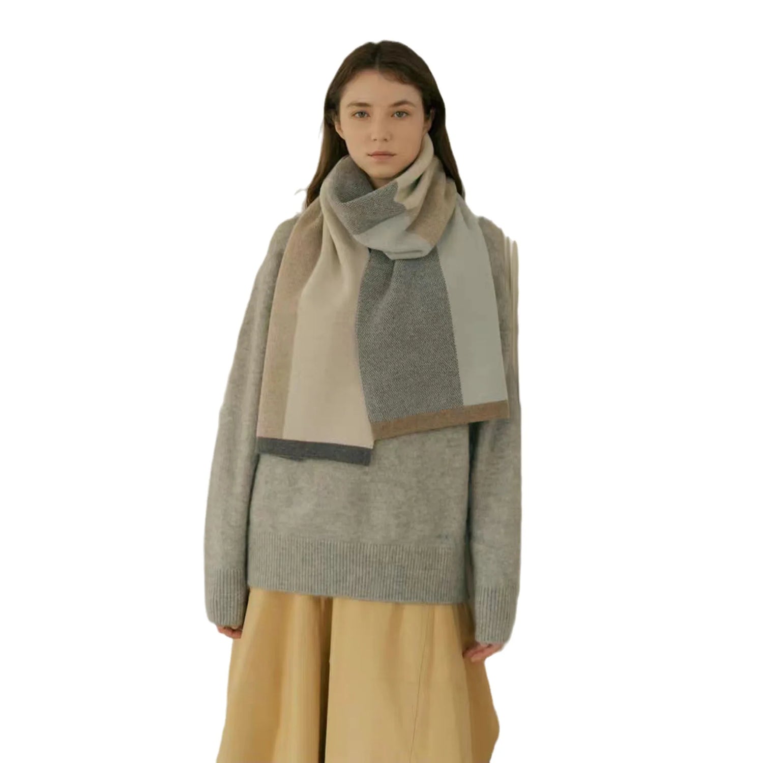 Temperament Cashmere Scarves Women Winter Designer Warm Knitting Scarf Men Splice Shawl Simple Fashion Commuting Long Muffler