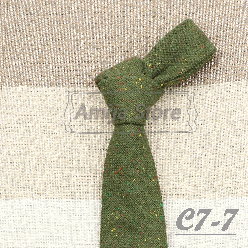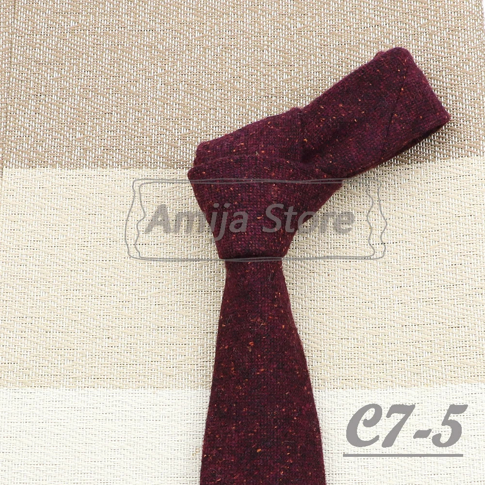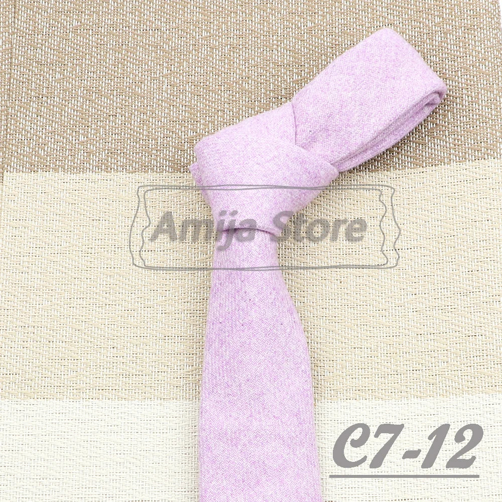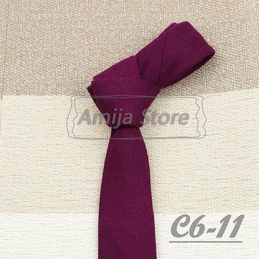 High Quality 100% Wool Tie Slim Solid Red Yellow Blue Ties Handmade Casual Fashion Men Woven Skinny Necktie For Wedding Party