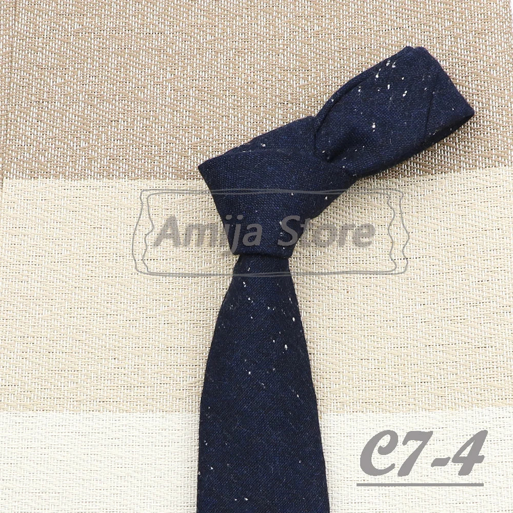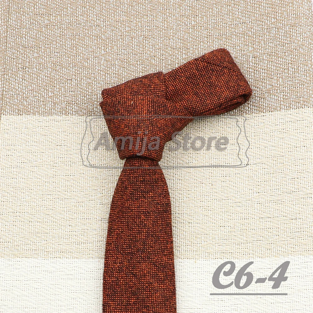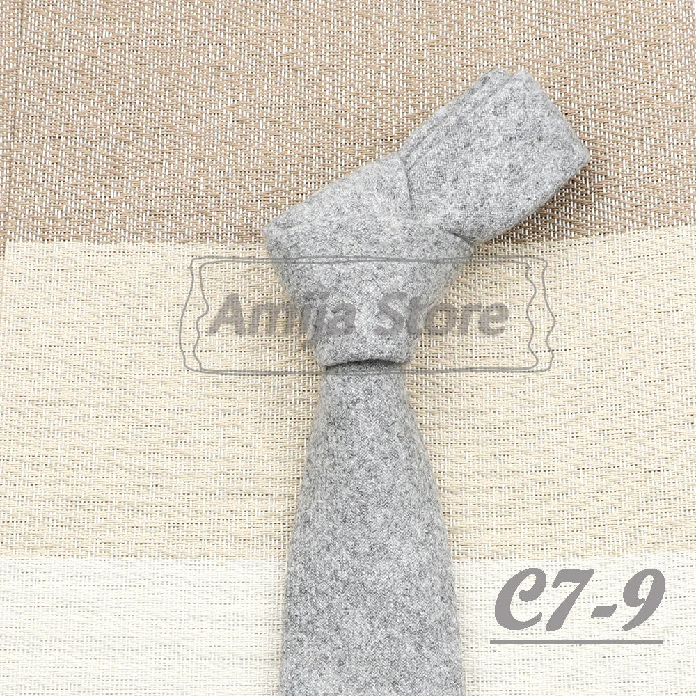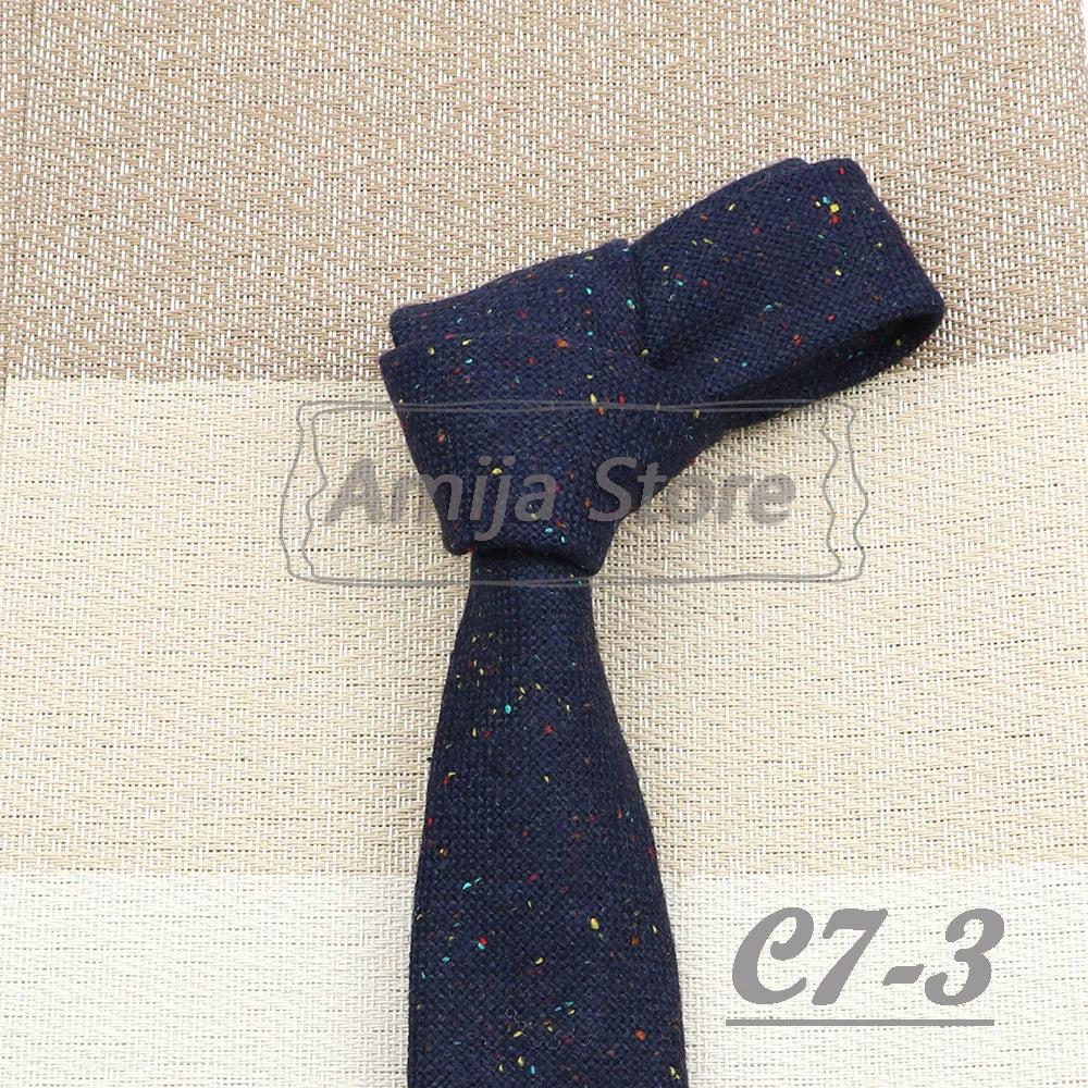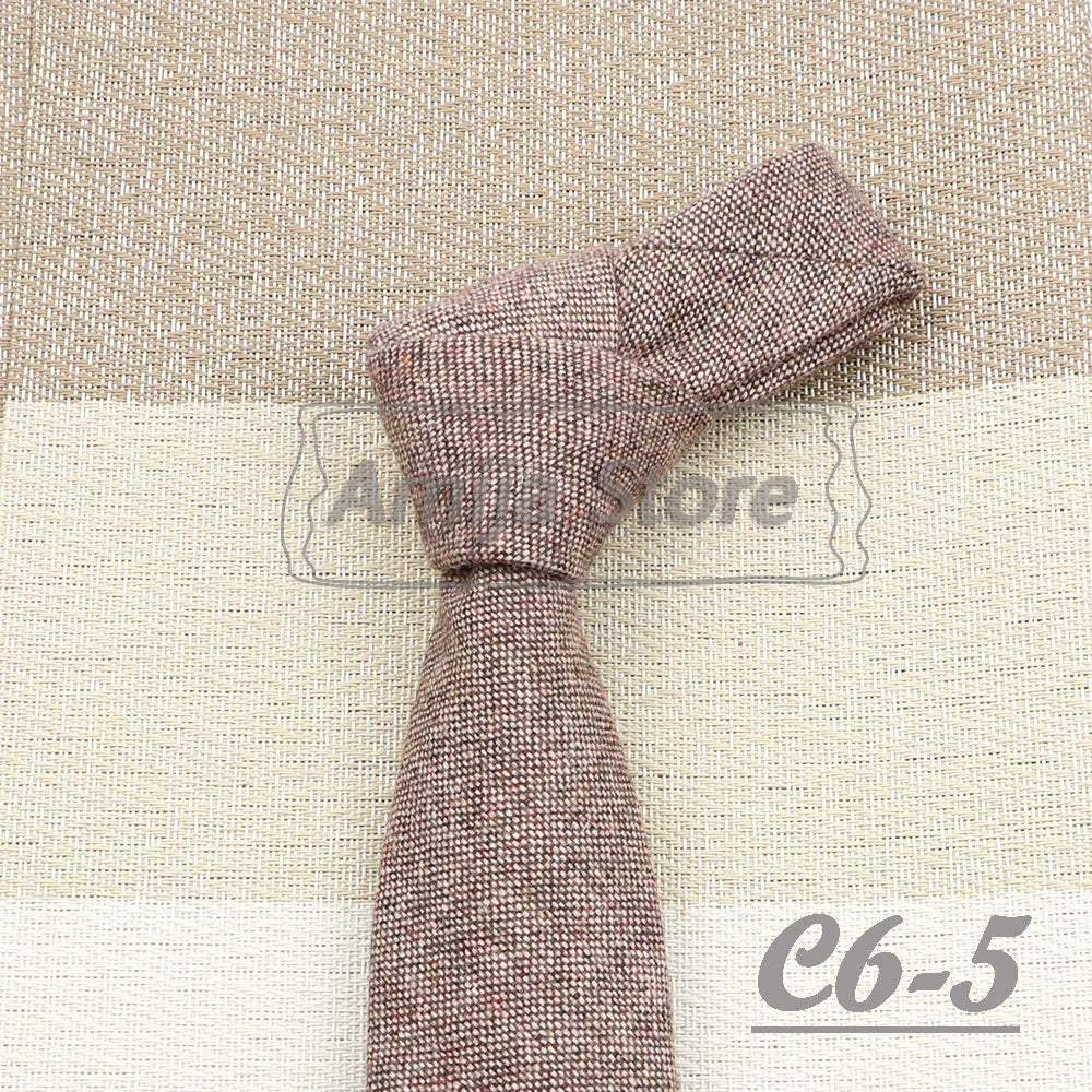 High Quality 100% Wool Tie Slim Solid Red Yellow Blue Ties Handmade Casual Fashion Men Woven Skinny Necktie For Wedding Party