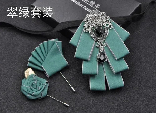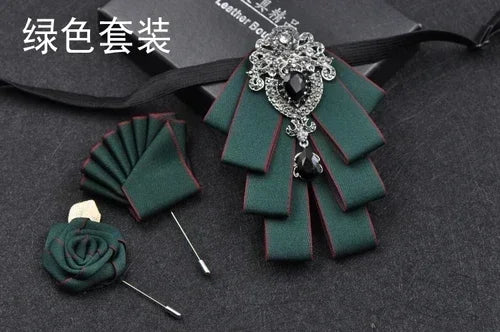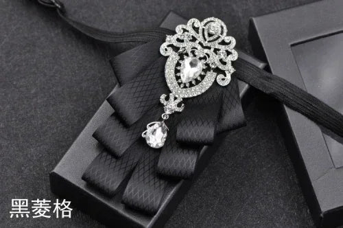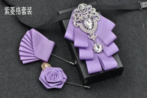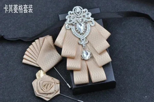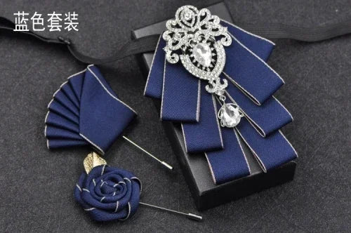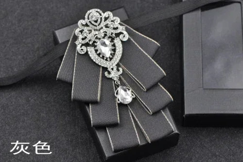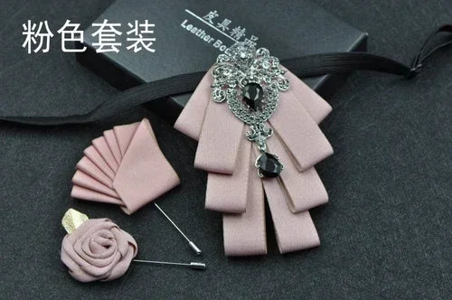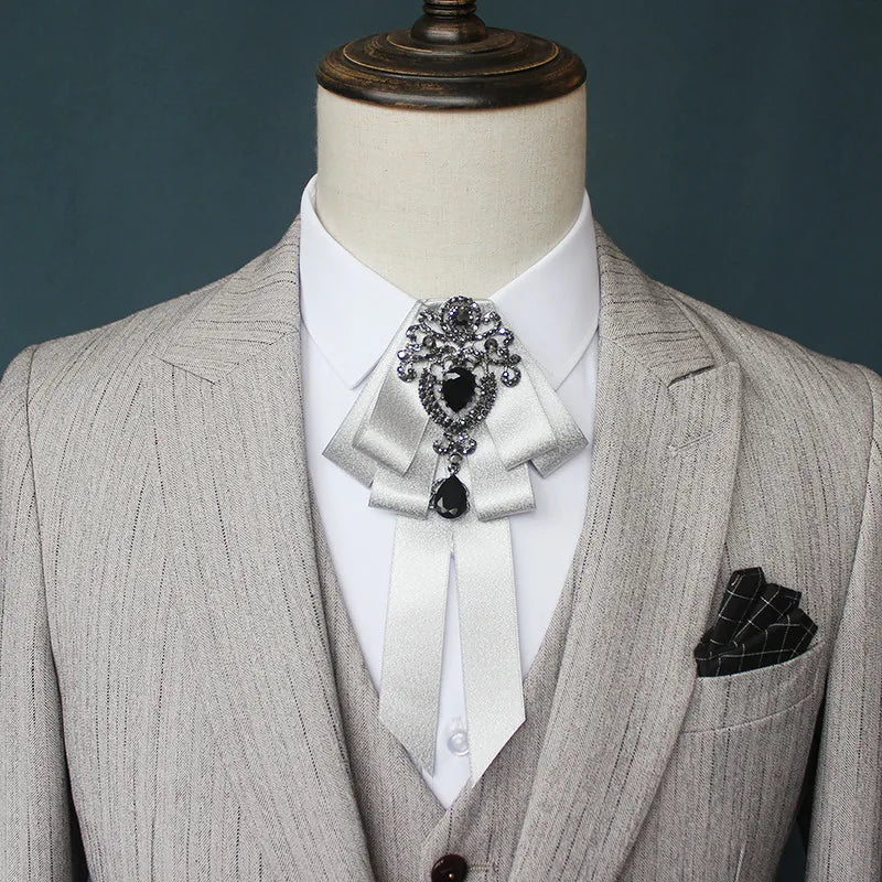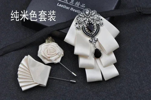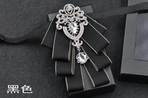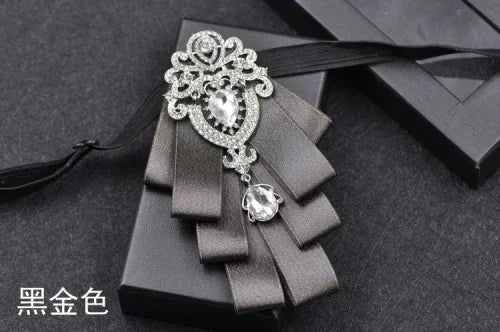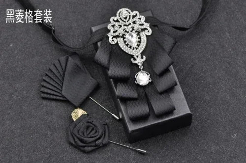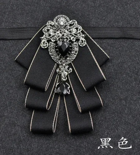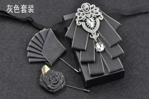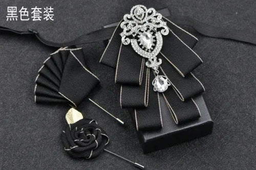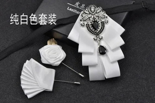 Luxury Black Rhinestone Handmade Bow Tie Men's Wedding Groomsman High-end British Boy Business Suit Shirt Bowtie Set