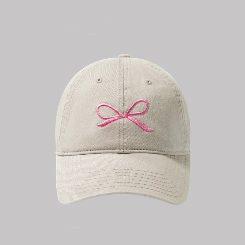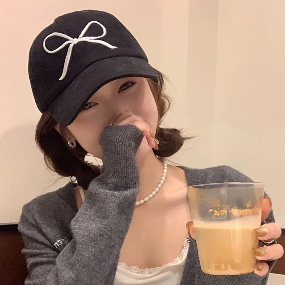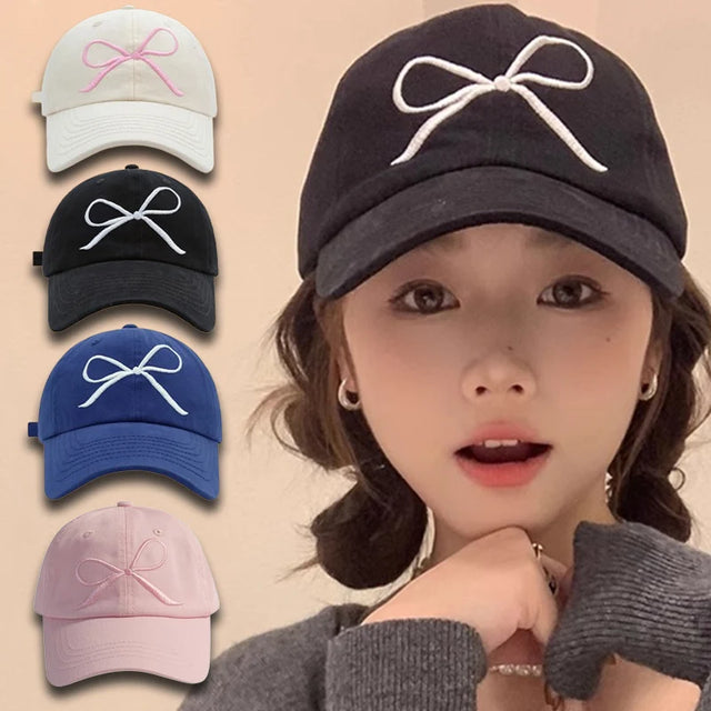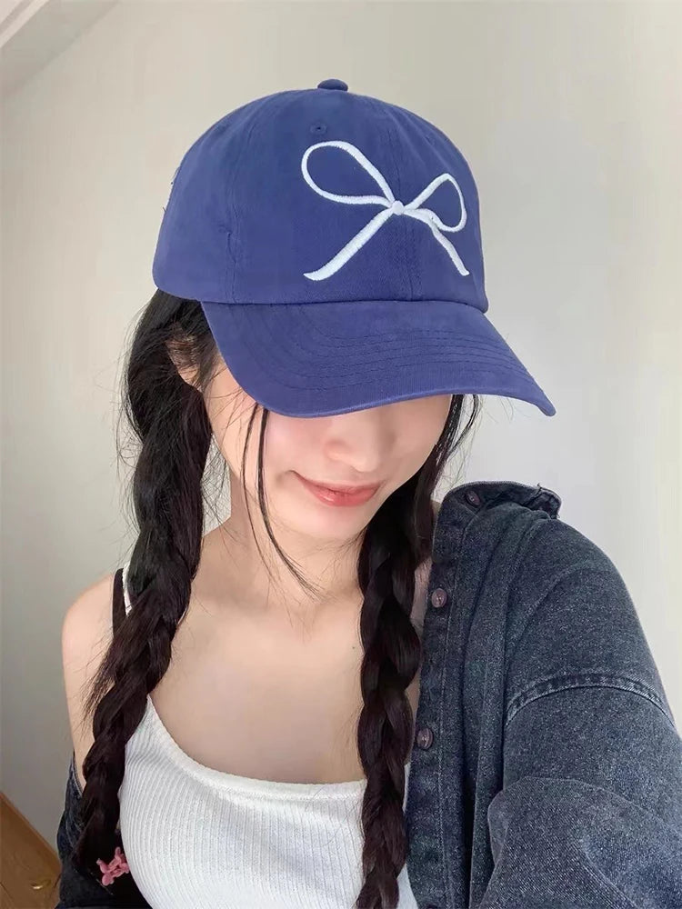 New Korean Bow Baseball Cap Women Y2K Pink Bows Embroidered Snapback Hat Summer Adjustable Soft Top Peaked Fashion Caps Gorras