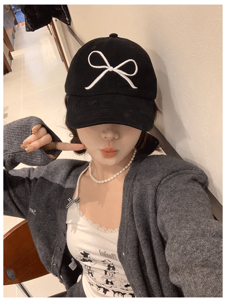 New Korean Bow Baseball Cap Women Y2K Pink Bows Embroidered Snapback Hat Summer Adjustable Soft Top Peaked Fashion Caps Gorras - Black is backordered and will ship as soon as it is back in stock.