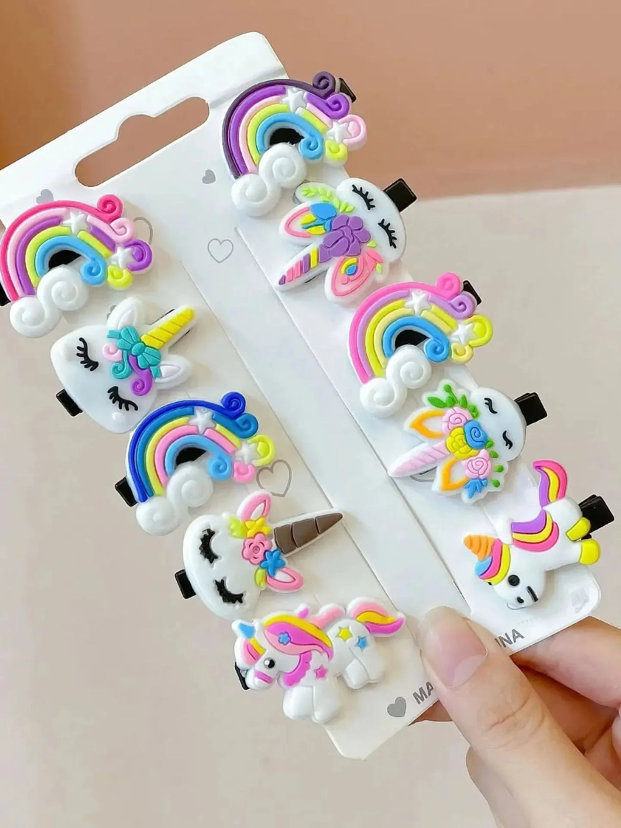 10pcs Kids Hair Clips Soft Gel 10pcs Set Girls Hair Clips Cute BB Clips Side Clips Cartoon Hair Cards - Rainbow and Shark is backordered and will ship as soon as it is back in stock.