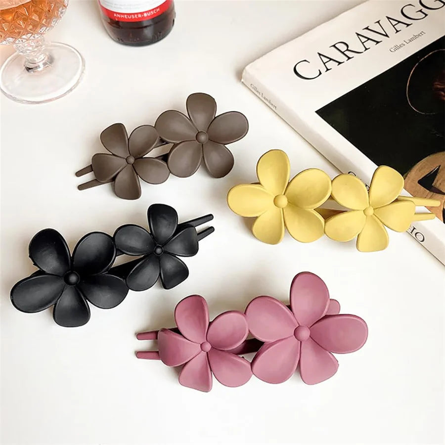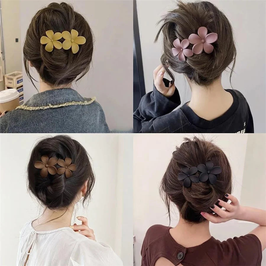 4Pcs Flower Hair Clips Fashion Matte Black Floral Hairpins Hair Claw Clips Non-Slip Hair Clamps Grab Elegant Hair Accessories