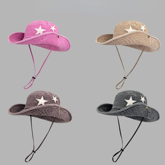 Retro Y2K Spice Girls Style Fisherman Hat Summer Cowboy Sun Cap Travel Photo Bob Panama Women Outdoor Hiking Sunshade Bucket Hat