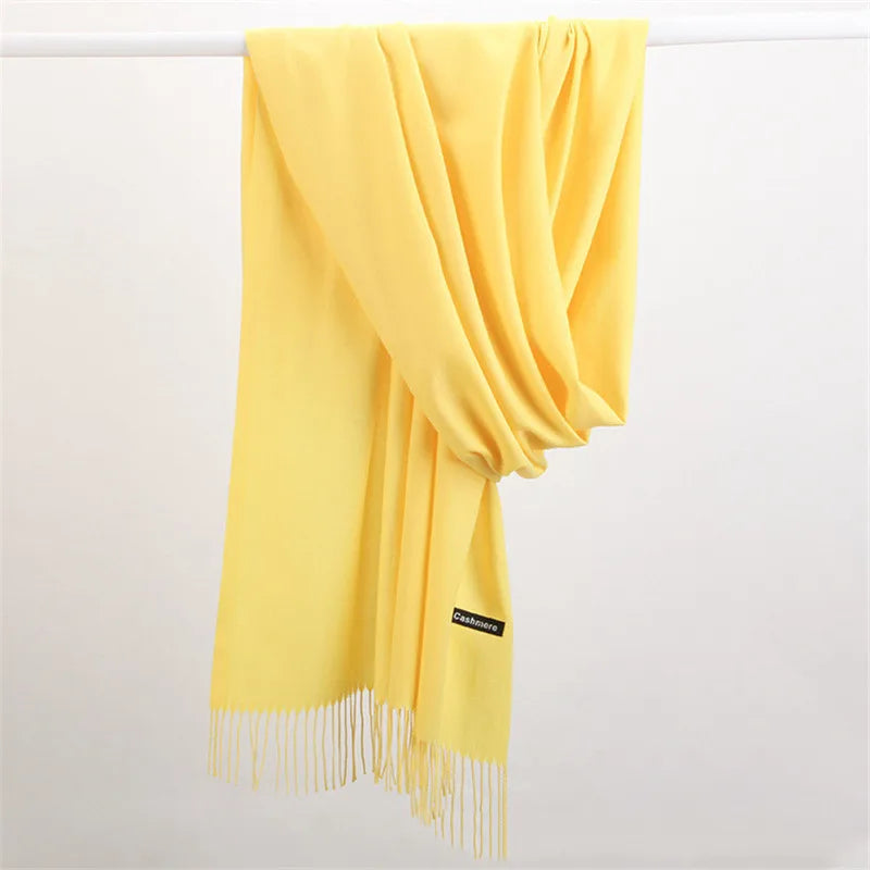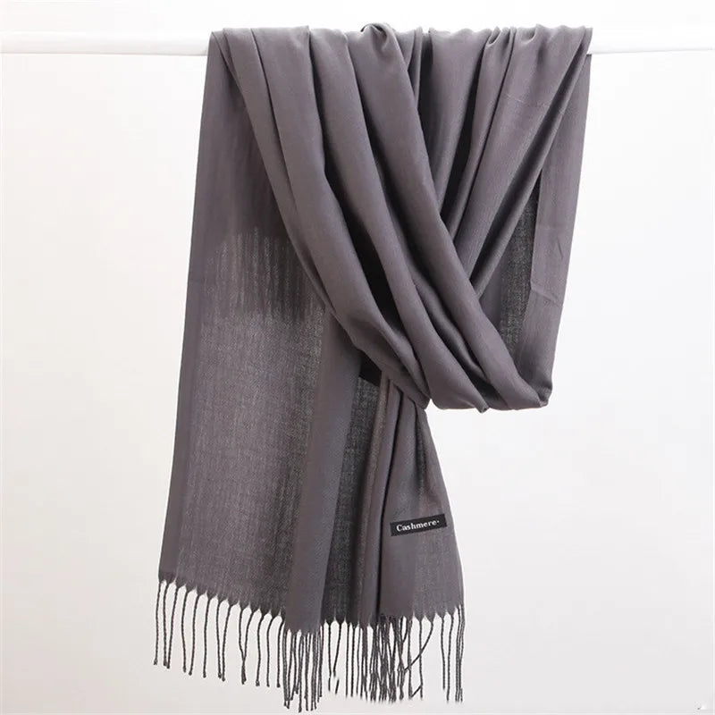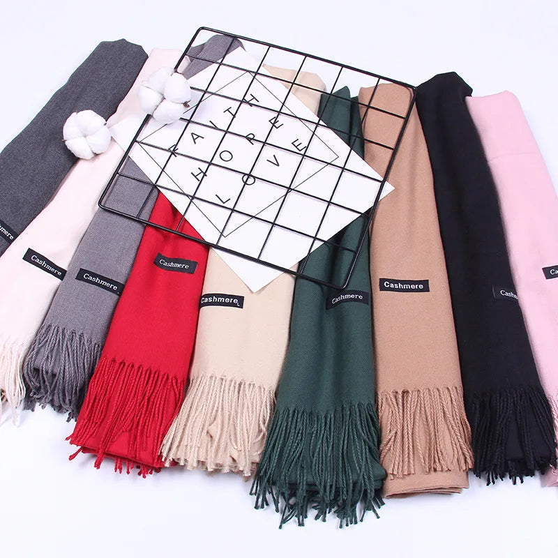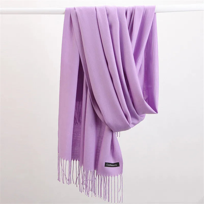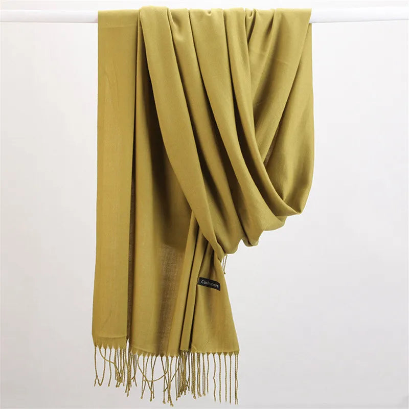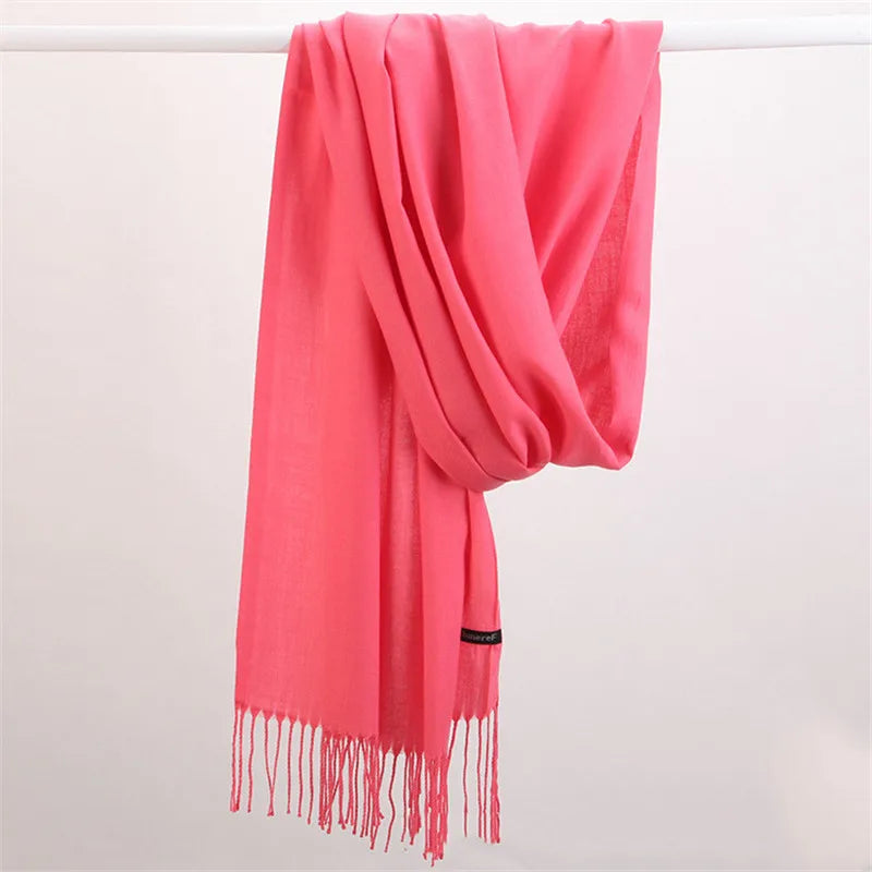 Women Solid Scarf Cashmere Pashmina Shawls Tassel Hijab Head Wraps Femme Thin Autumn Winter Tassel Scarves Bandana 2022 Designer
