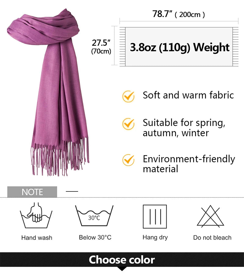 Women Solid Scarf Cashmere Pashmina Shawls Tassel Hijab Head Wraps Femme Thin Autumn Winter Tassel Scarves Bandana 2022 Designer - 1 / One Size is backordered and will ship as soon as it is back in stock.