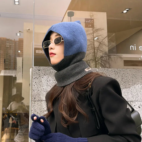 Winter new Firefox ears warm furry skiing scarf gloves one-piece hat children