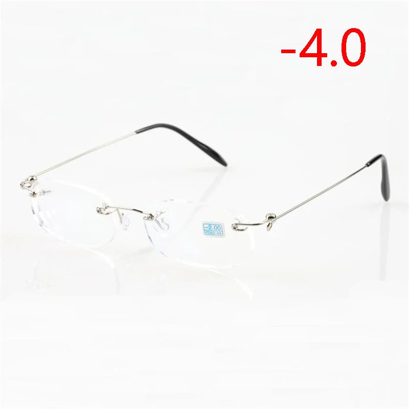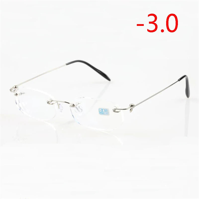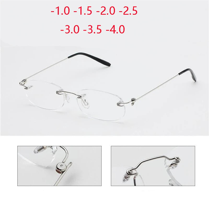 Frameless Nearsighted Glasses Finished Women Men Metal Leg Rimless Square Diopter Eyeglasses -1.0 -1.5 -2.0 -2.5 -3.0 -3.5 -4.0