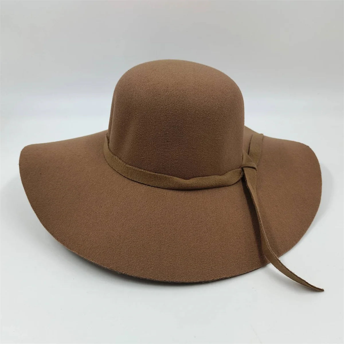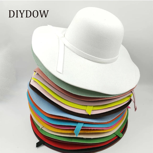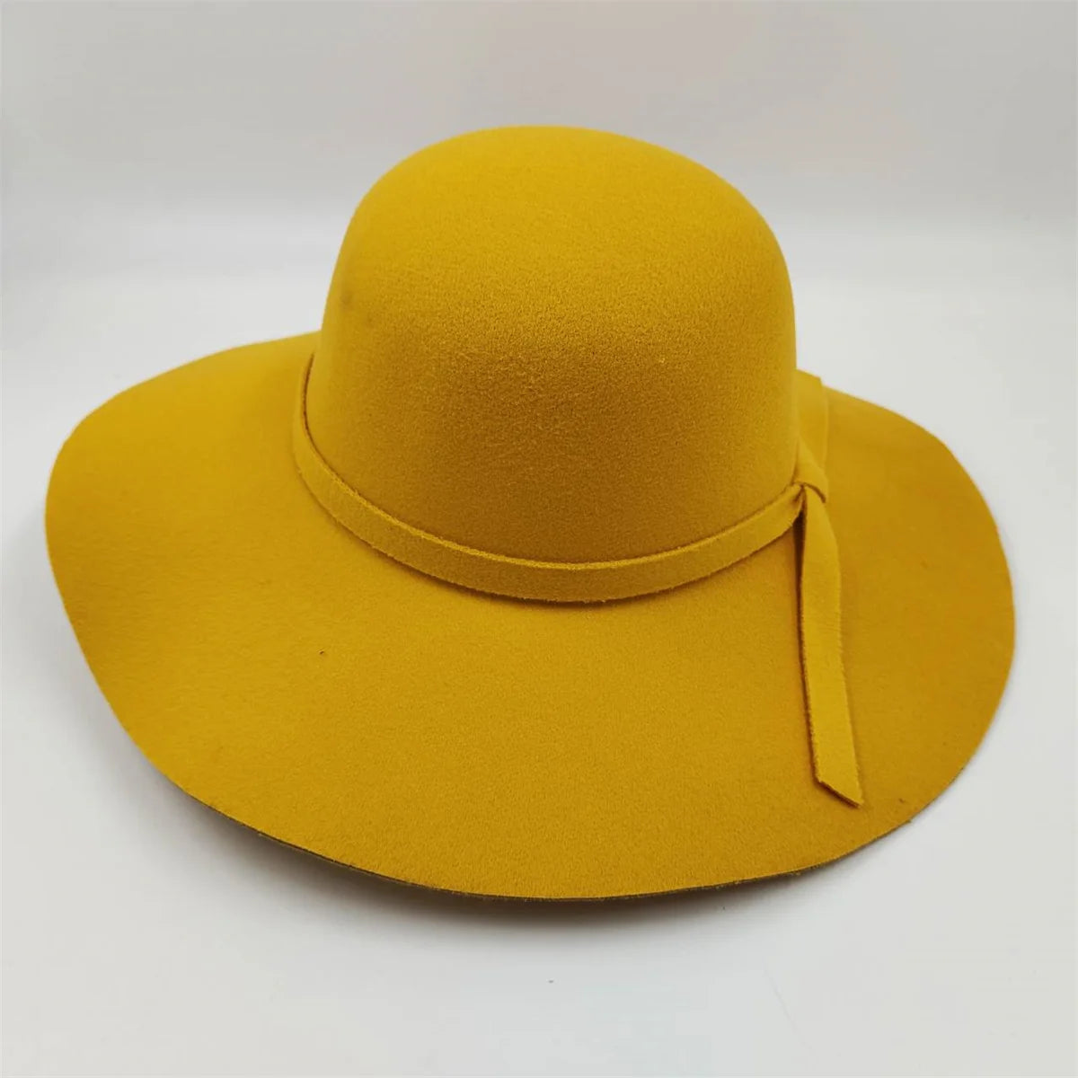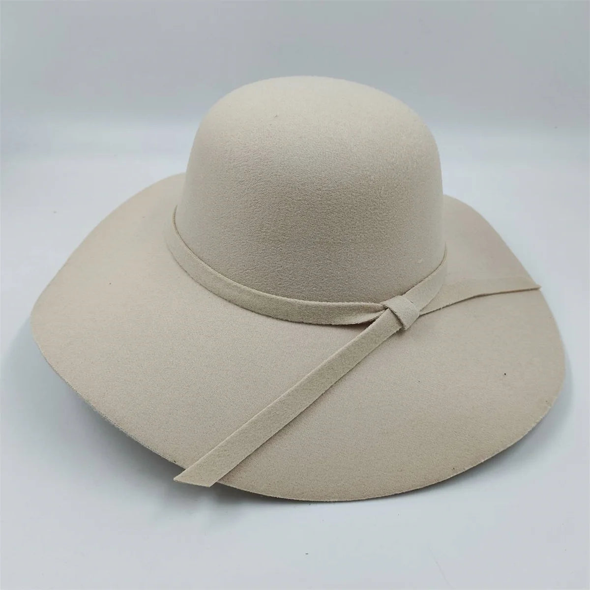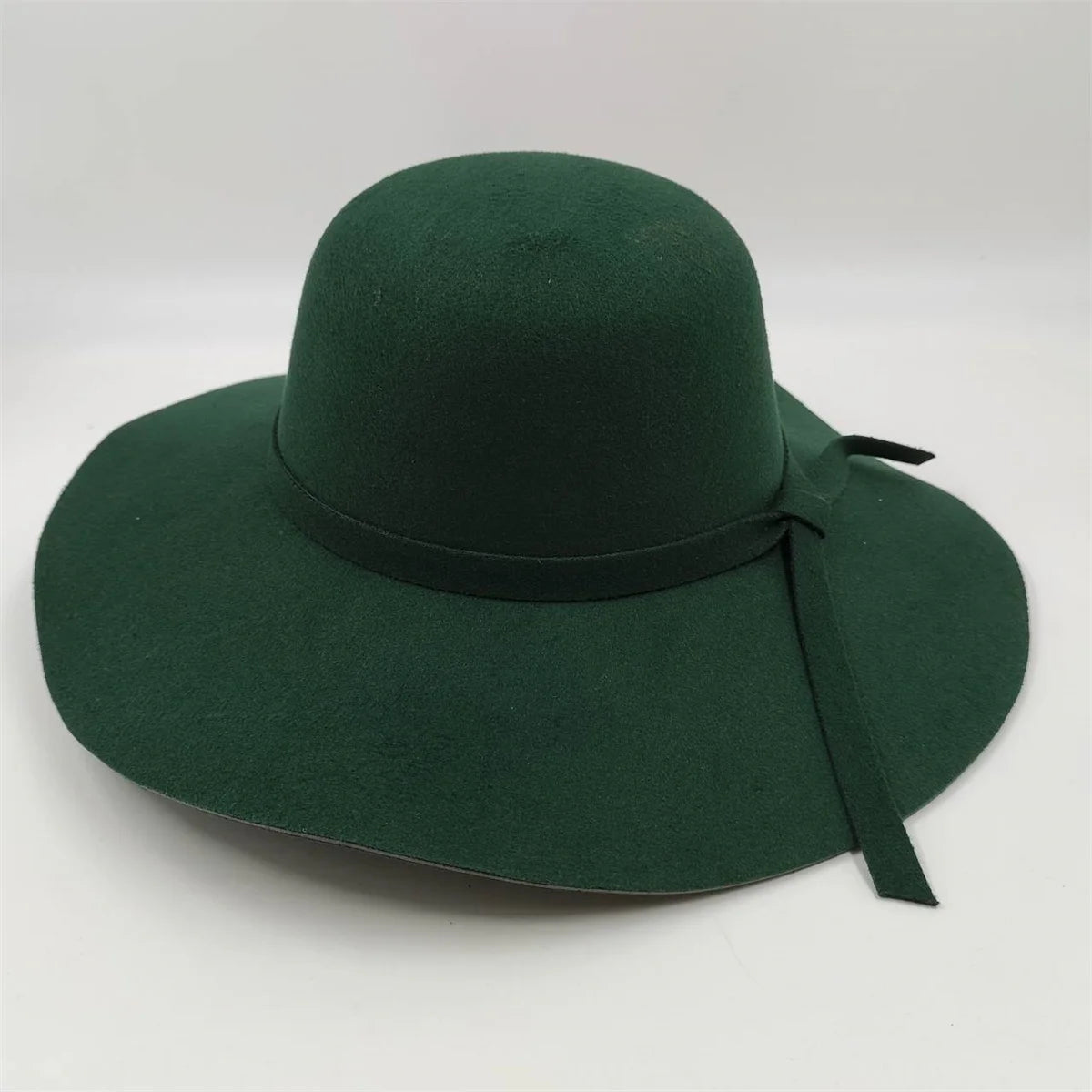 Hepburn Style Women's Large Brim Felt Imitation Wool Hat Unisex Fedora Hat Fashionable Round Top Bucket Hat Autumn Winter