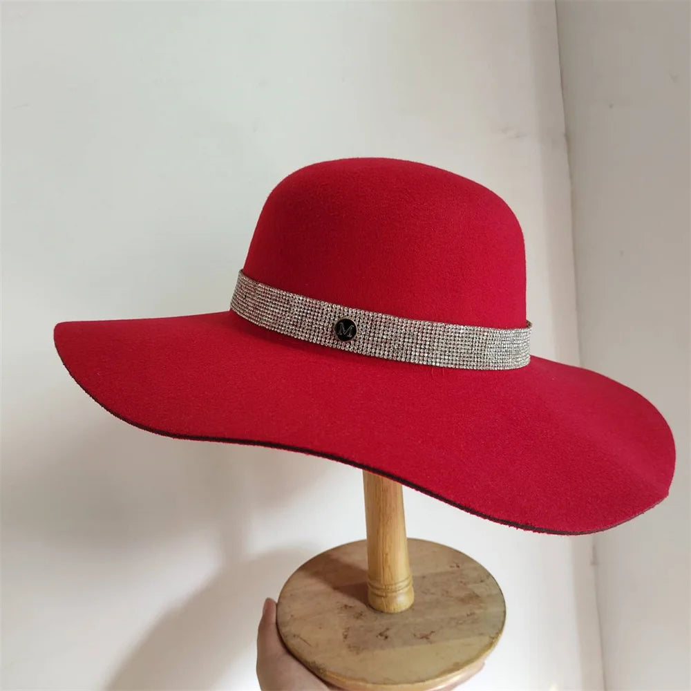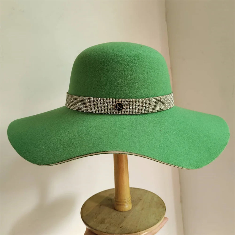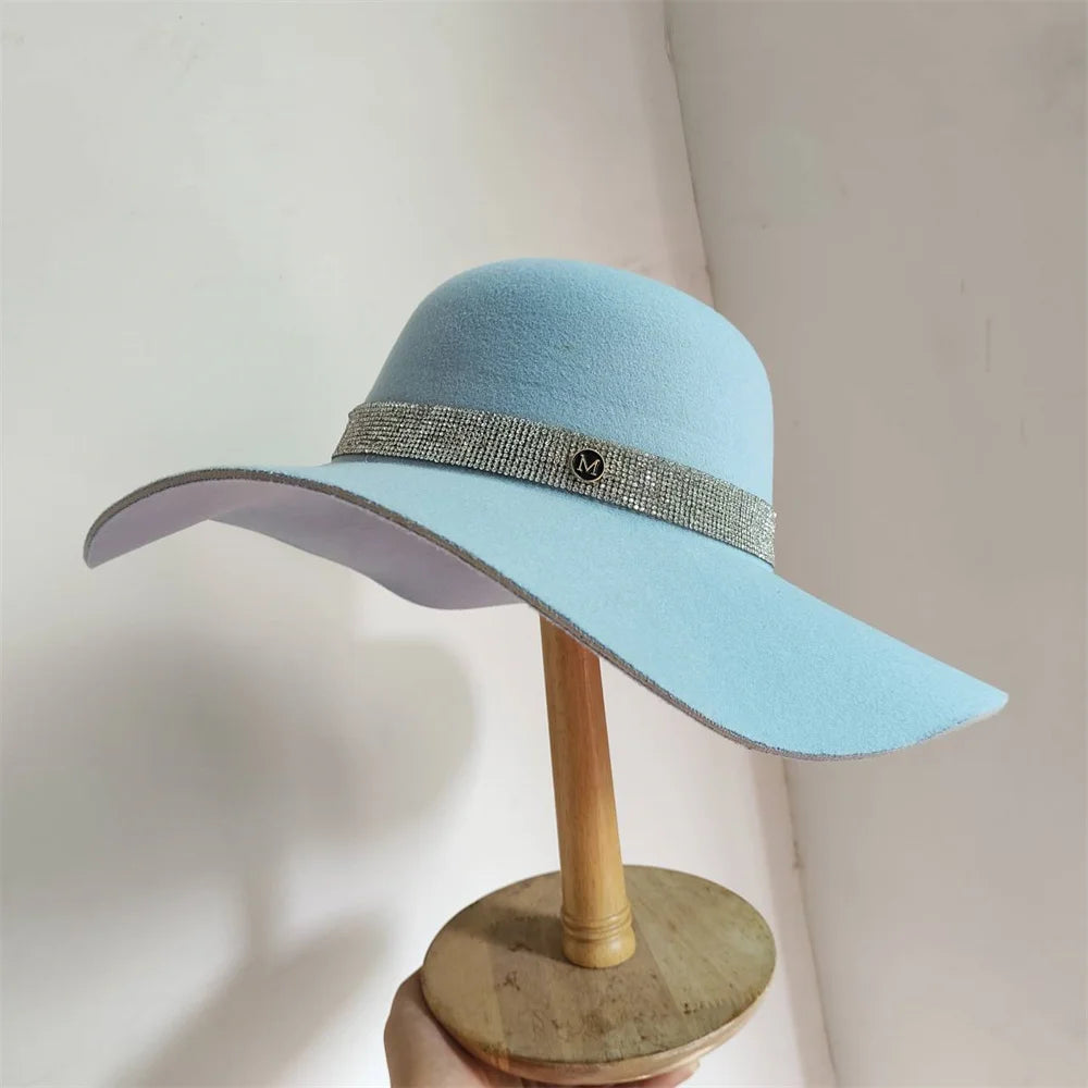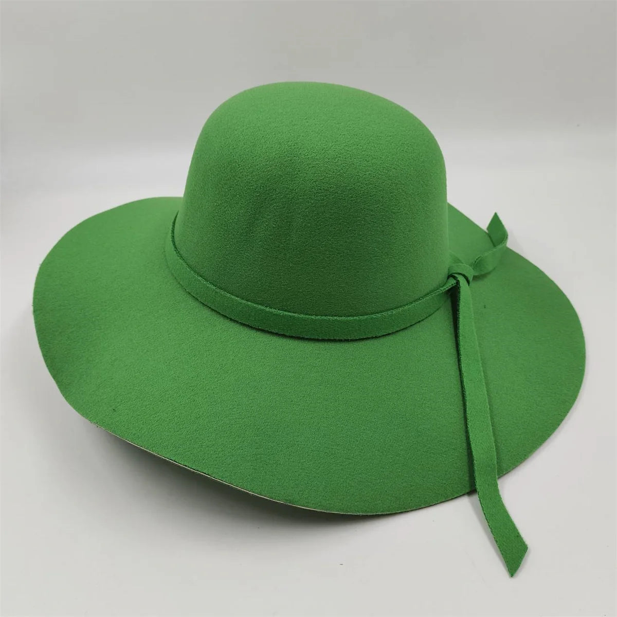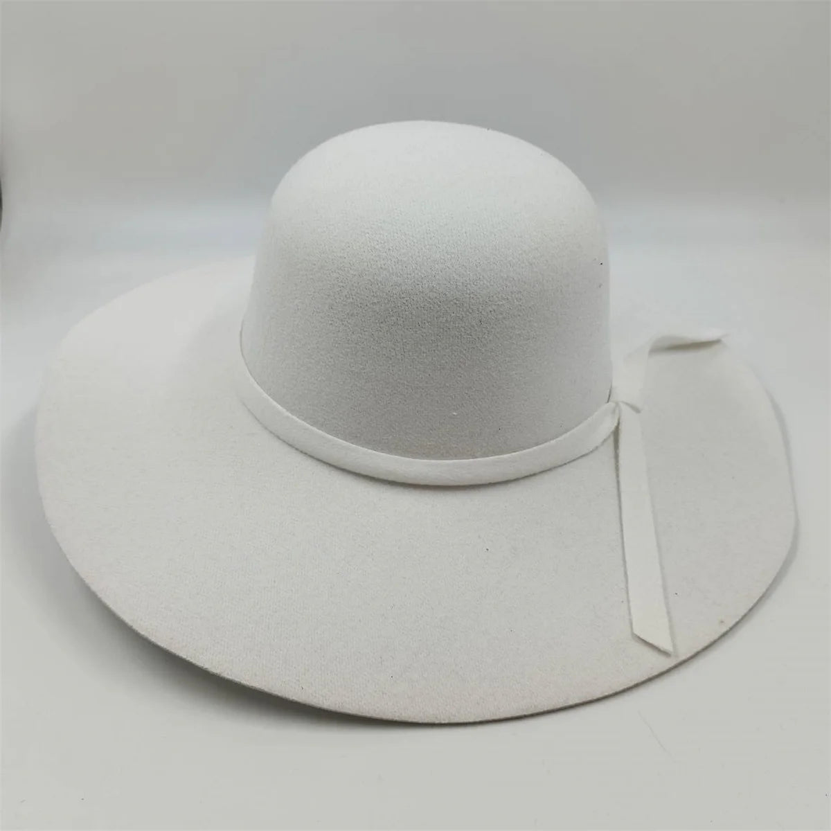 Hepburn Style Women's Large Brim Felt Imitation Wool Hat Unisex Fedora Hat Fashionable Round Top Bucket Hat Autumn Winter