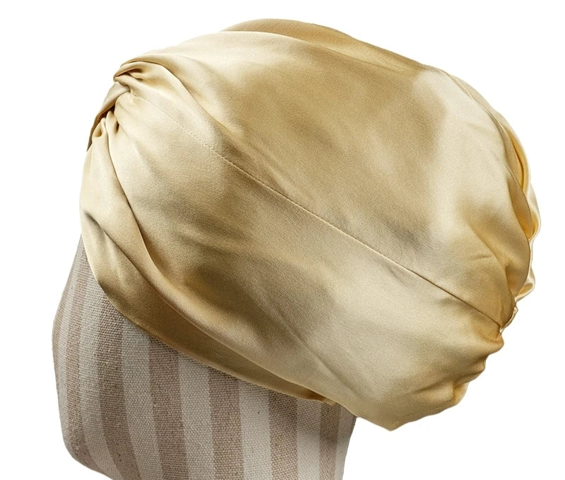 100 Mulberry Silk Turban Bonnets For Women Twisted Sleeping Night Cap 19 Momme Pure Silk Hair Wrap Cap For Curly Ladies Headwrap