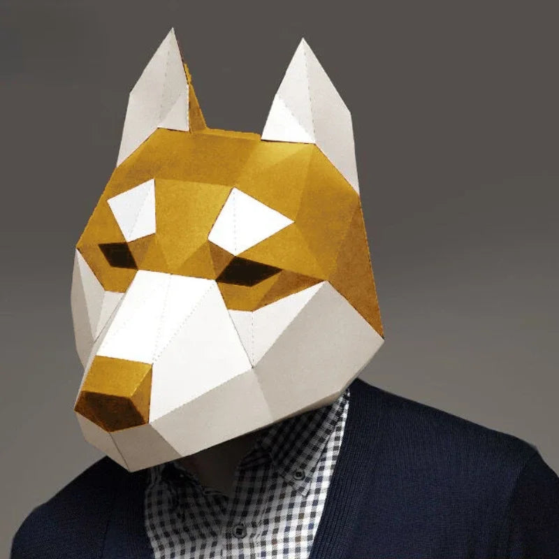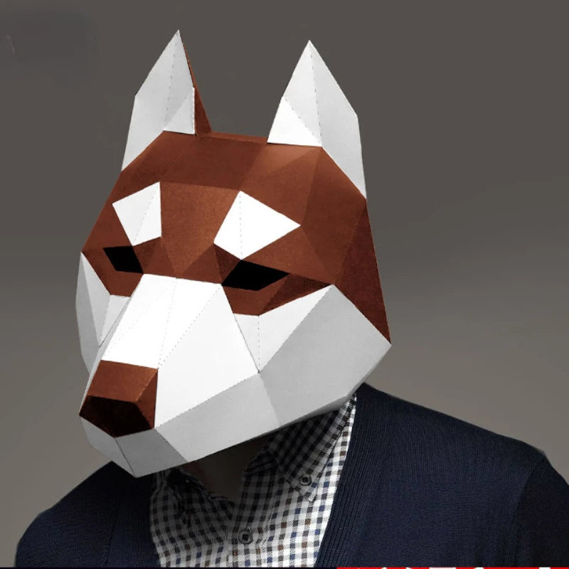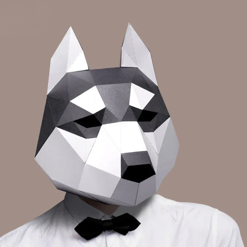3D Paper Mold Dog Husky Head Mask Headgear Animal Model Halloween Cosplay Props Woman Men Party Role Play DIY Craft Masks