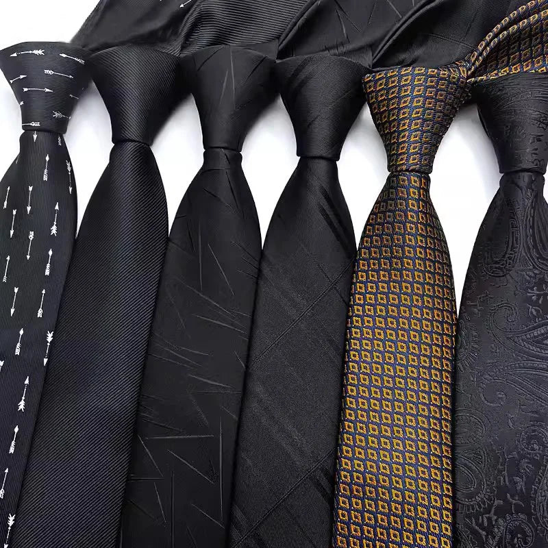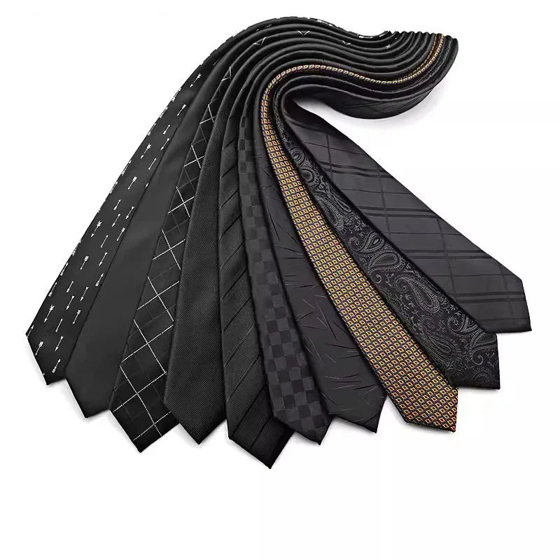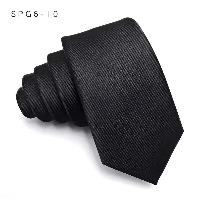 Luxury Slim Narrow Skinny 6CM Mens Necktie Neck Ties For Man Black Solid Dot Striped Jacquard Cravat Business Party Corbatas