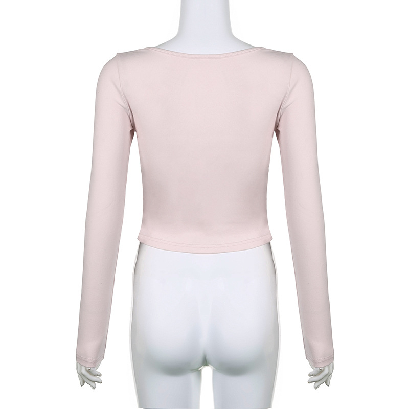 Sweet Contrast Ribbons Lace-up Bow Cropped Top Pink Coquette Aesthetic Slim Folds V-neck Knitted T-shirts Fall Cute Tee