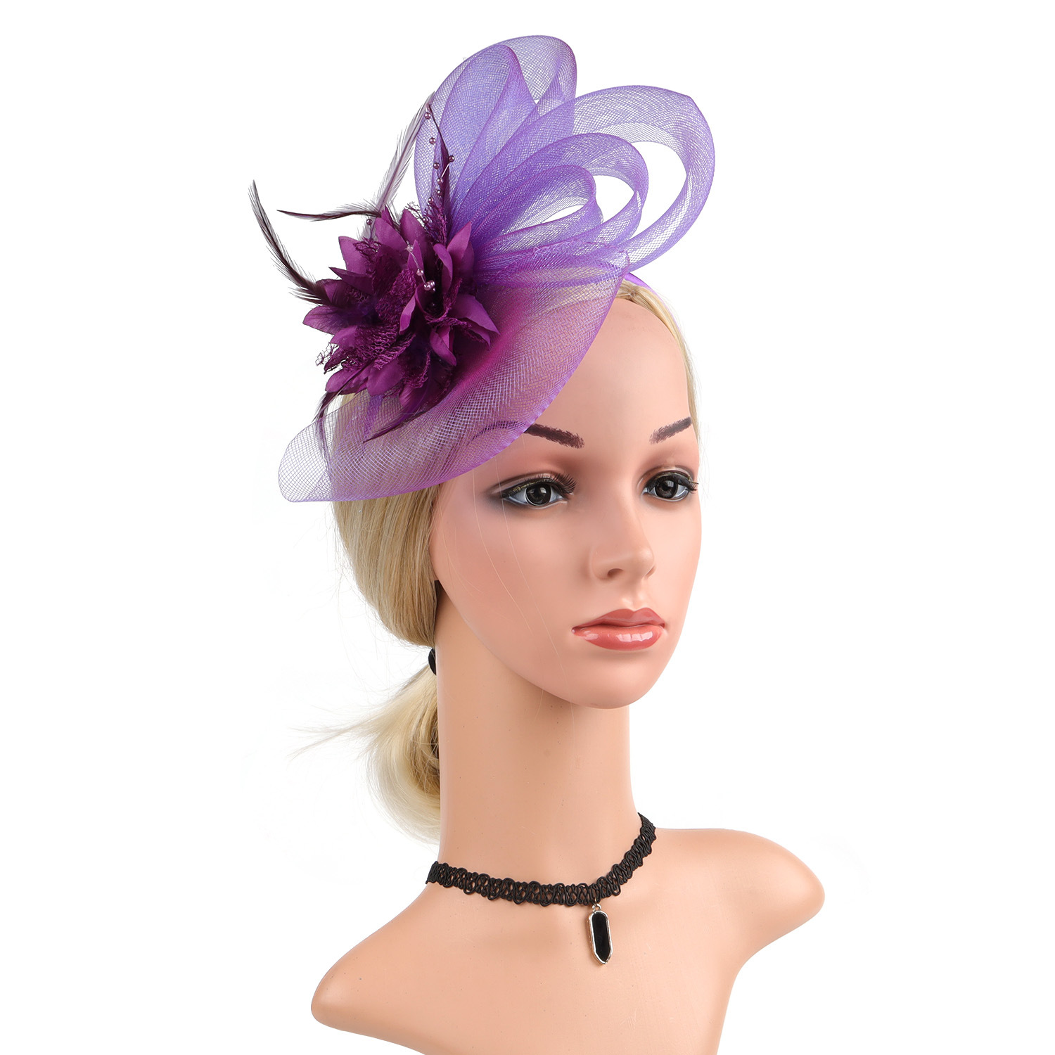 Women Flower Mesh Ribbons Feathers Fascinator Brides Hair Accessories Headband or a Clip Cocktail Tea Party Headwewar for Girls