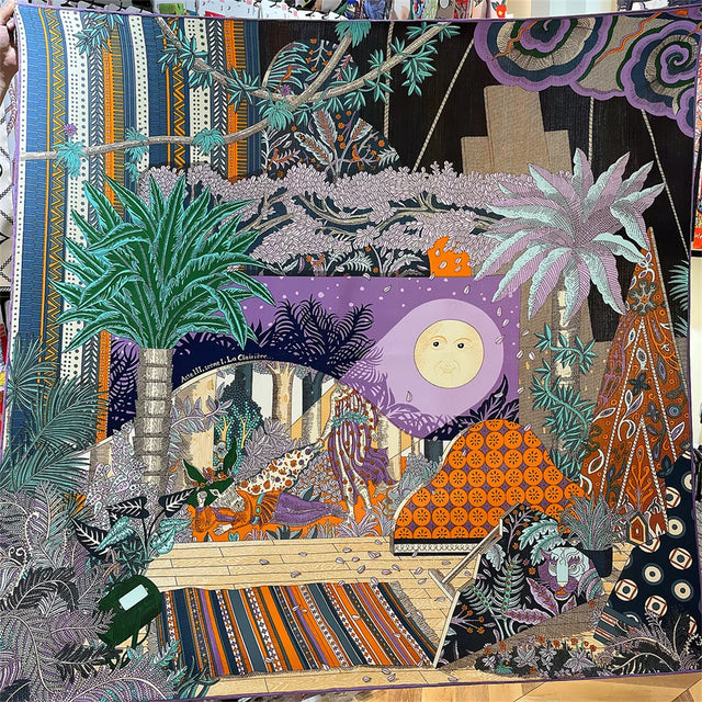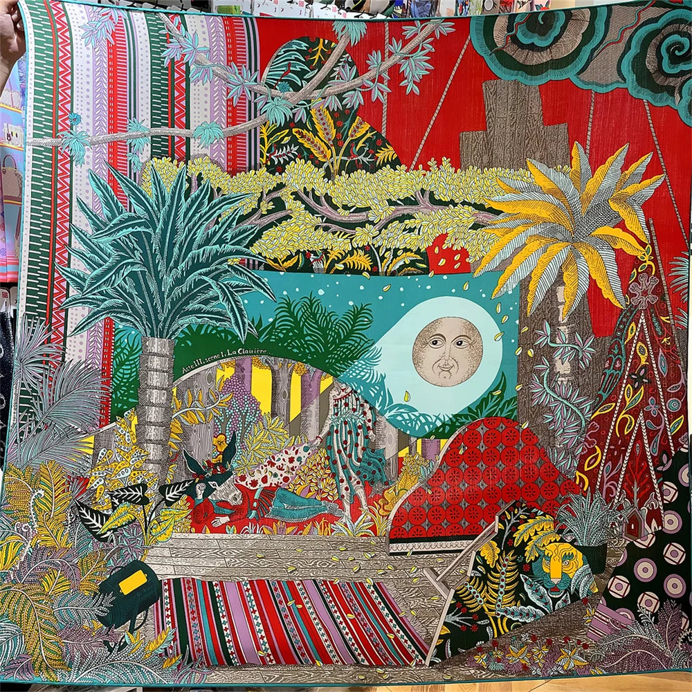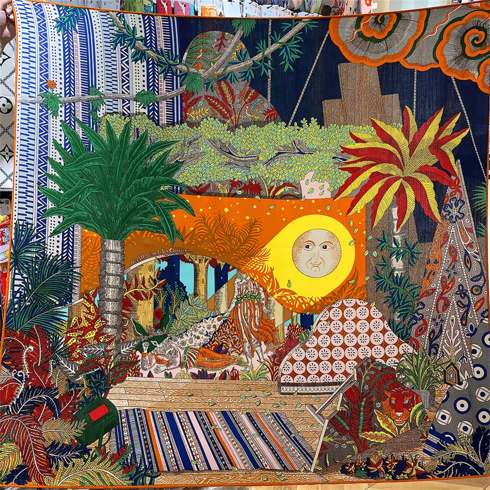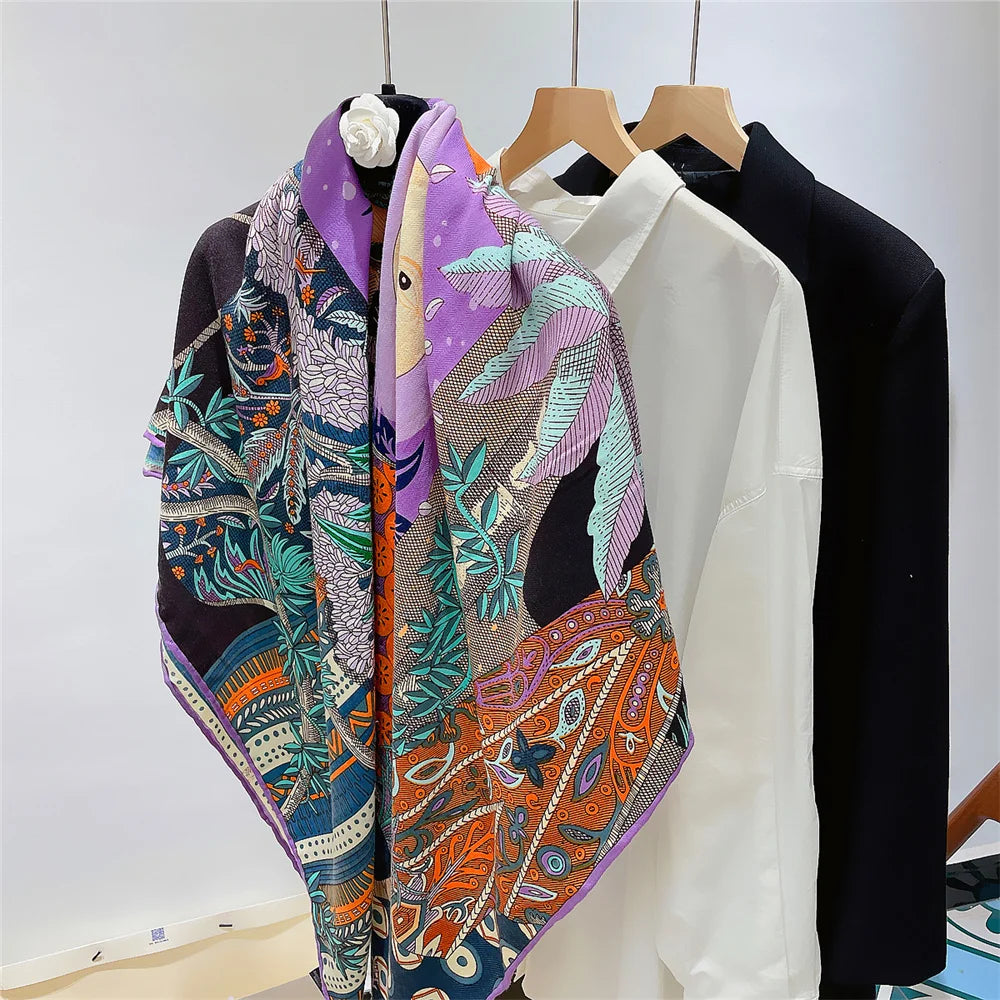 POBING Silk Cashmere Scarf Women Manual Hand Rolled Shawls Stoles Sun World Print Square Scarves Wraps Echarpes Foulards Femme Wrap Bandanas