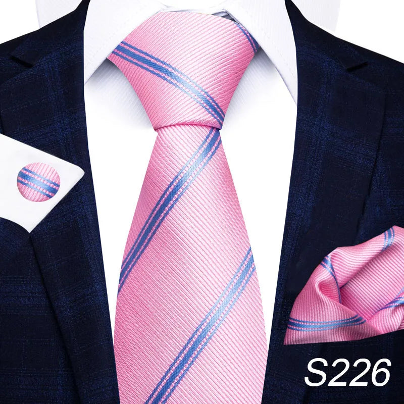 Brand Fashion 8 cm Tie For Men Woven Festive Present Tie Handkerchief Cufflink Set Necktie Shirt Accessories Red Striped - S203 is backordered and will ship as soon as it is back in stock.