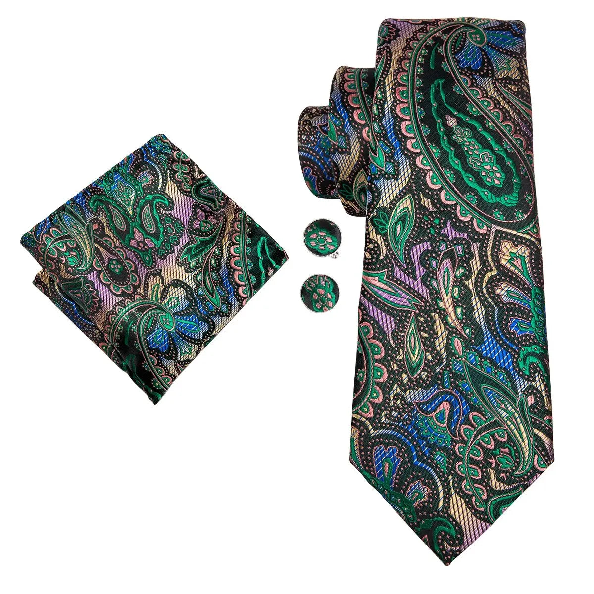 Hi-tie Teal Blue Paisley Gift Mens Classic Necktie Handkerchief Cufflink Set Business Party Wedding Tie For Men - N-3019 is backordered and will ship as soon as it is back in stock.