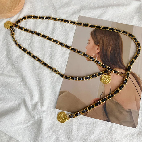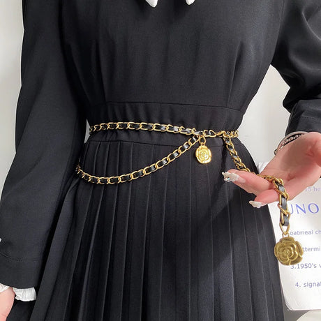 Waist Chain Women's 2023 New Camellia Decoration Small Fragrant Style Belt Trendy Vintage Waistchain