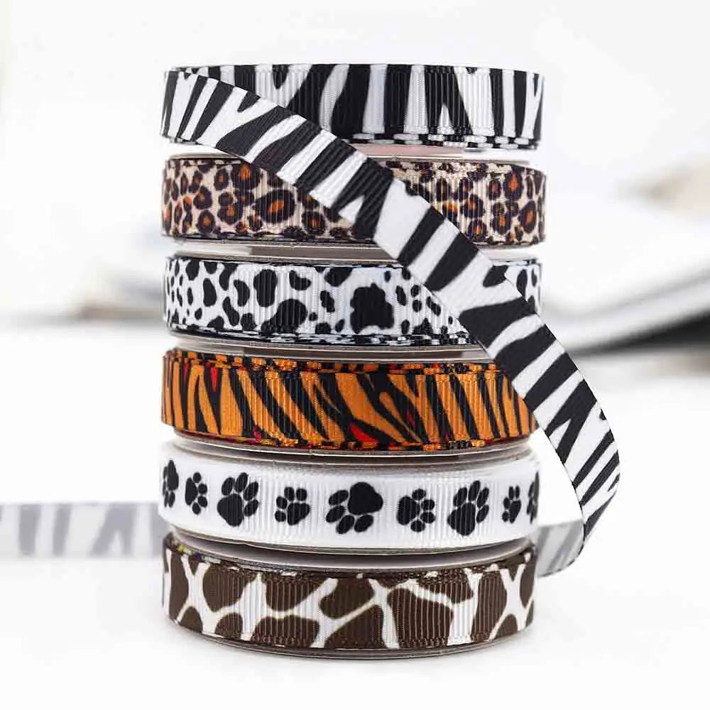 10mm 5Yard Animal Cow Stripe Whorl Ribbons Cake Gifts Box Packaging Wedding Hairpin Child Birthday Christmas Bowknot Party Decor