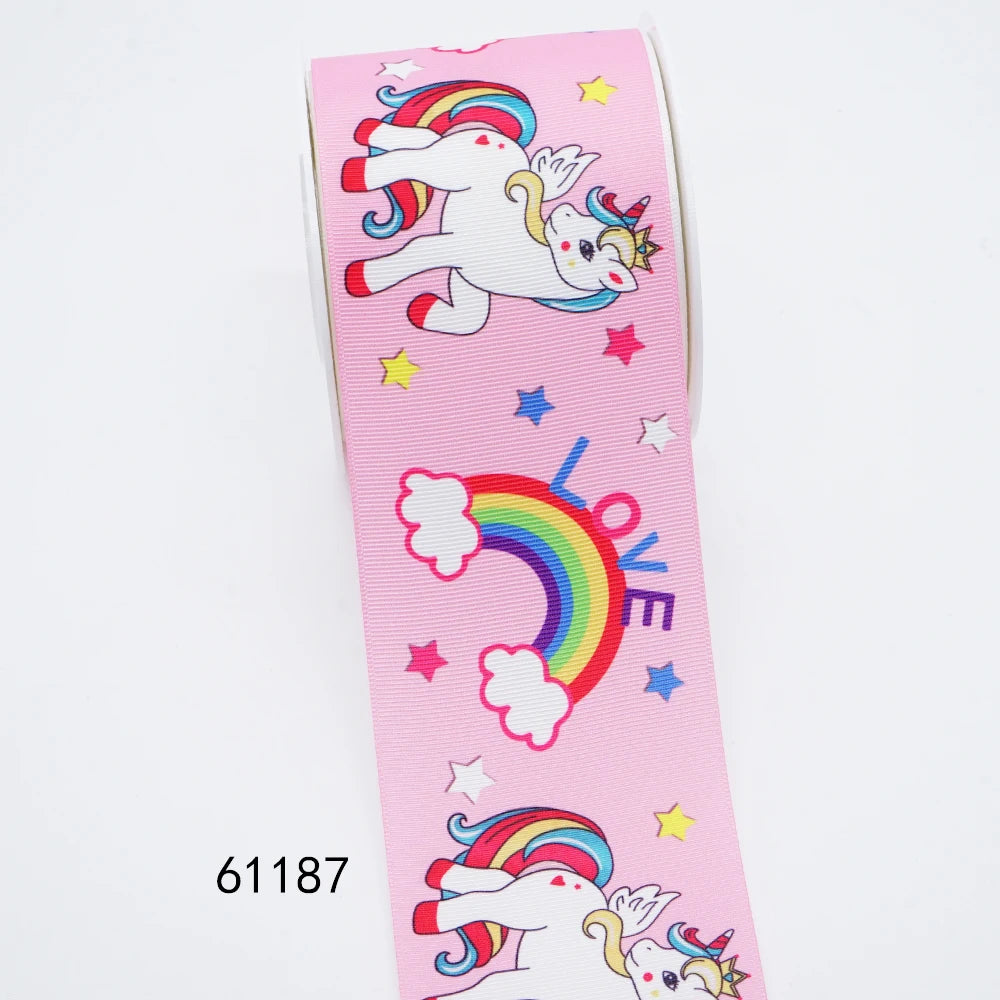 5 Yards Unicorn Printed Grosgrain Satin Ribbons For Bows DIY Craft Decoration Packaging Supplies. 61187 - 61685 / 38 mm grosgrain / CHINA is backordered and will ship as soon as it is back in stock.