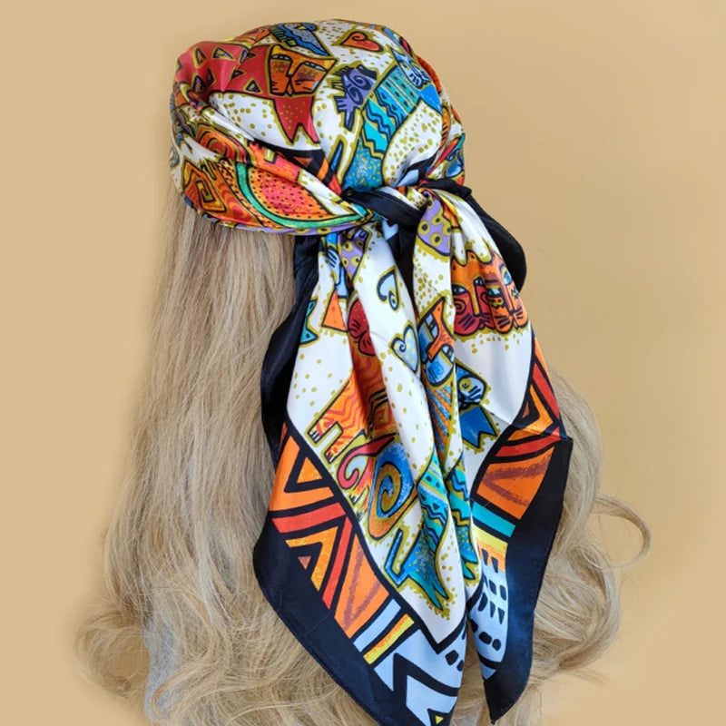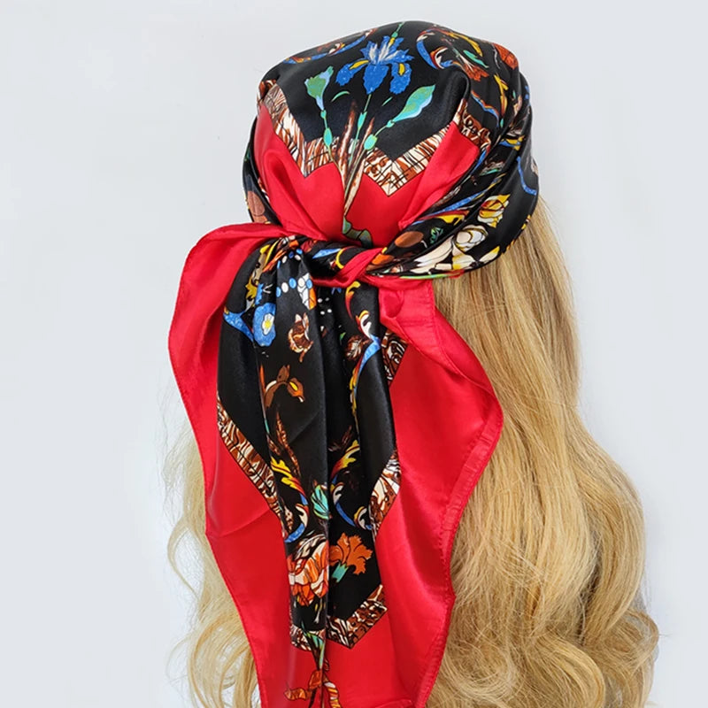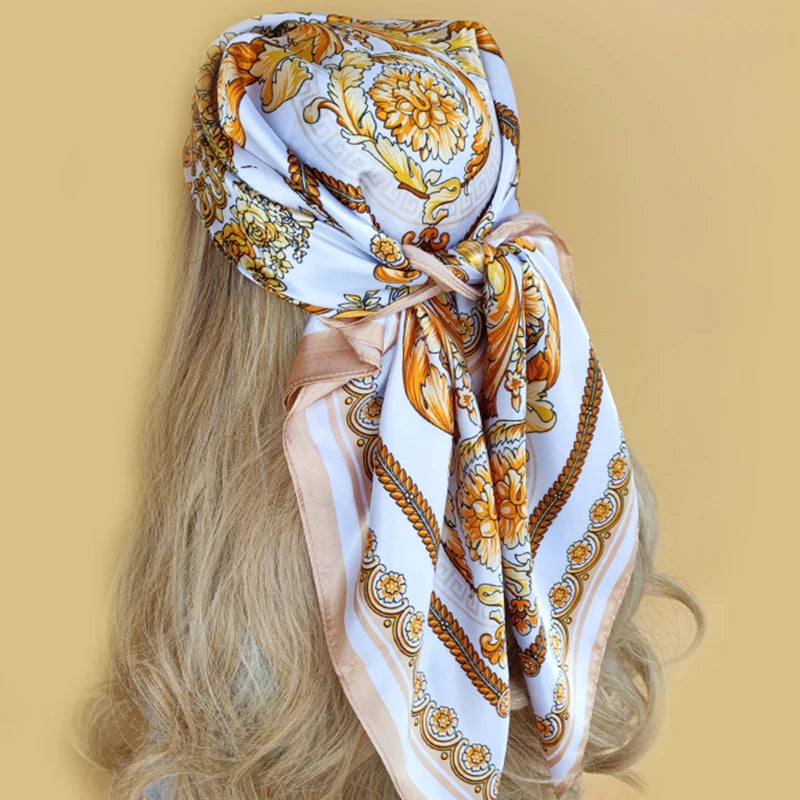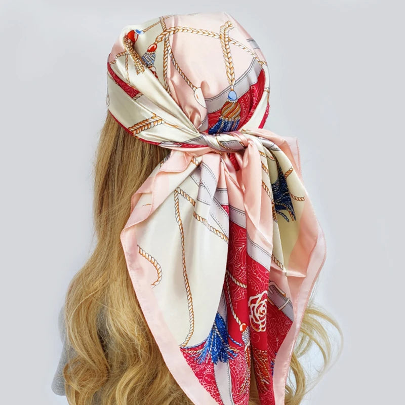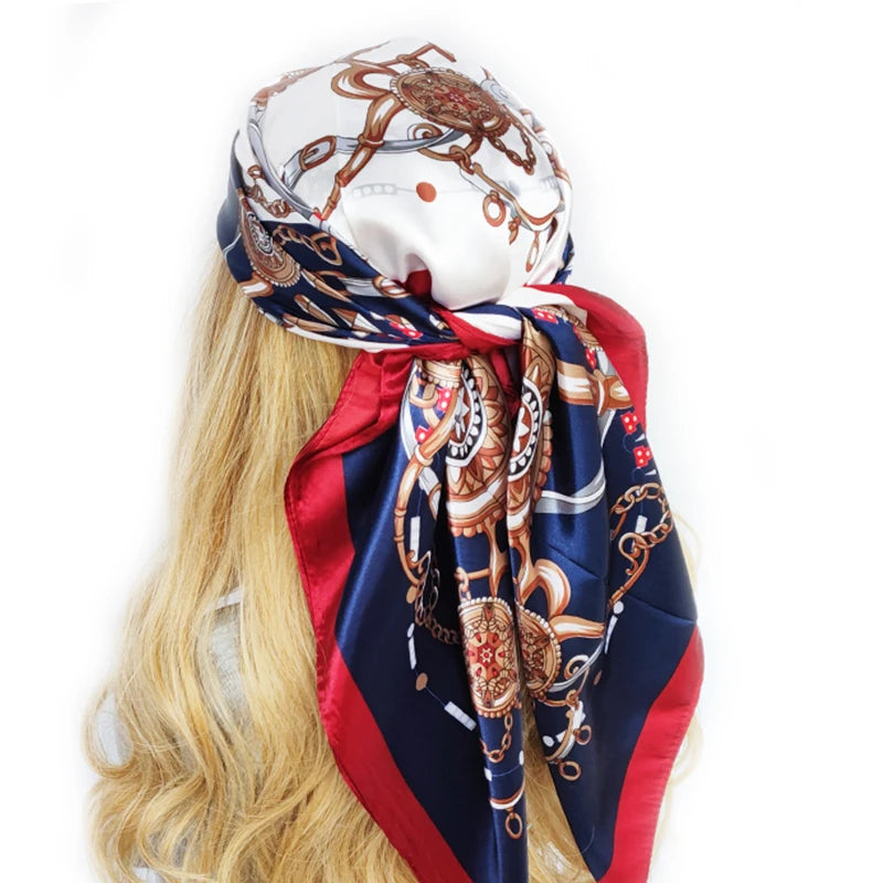 90X90CM Kerchief Fashion Print Satin Silk Scarves Popular Colour Square Shawls Luxury Sunscreen New Headcloth - 15 / 90X90CM is backordered and will ship as soon as it is back in stock.