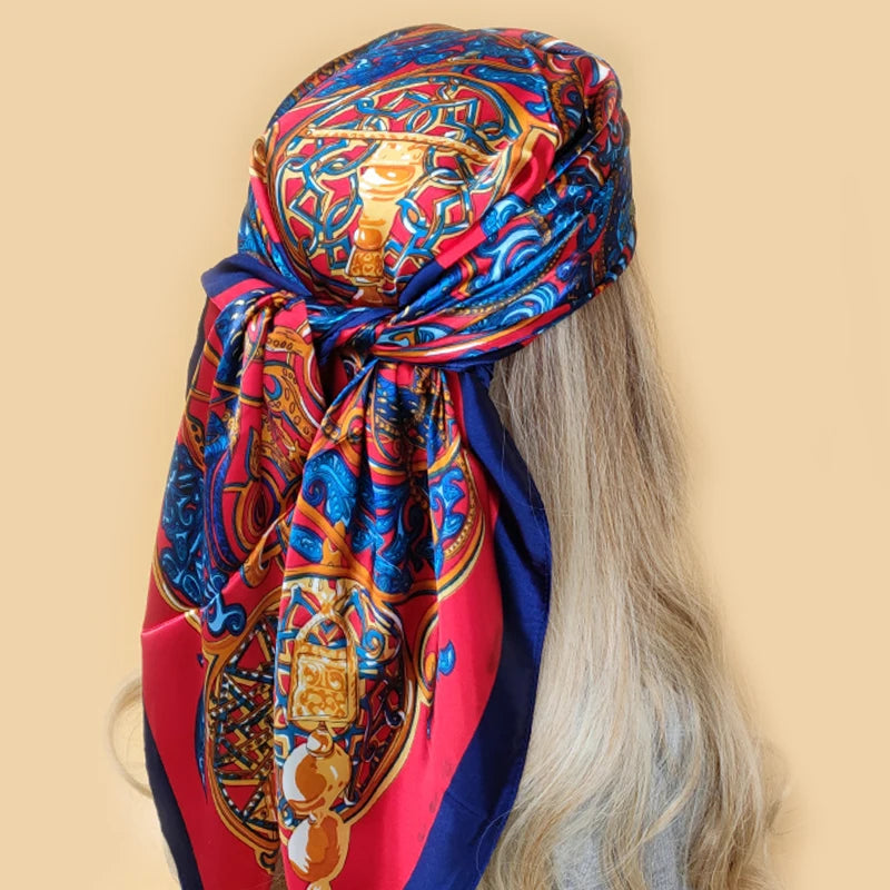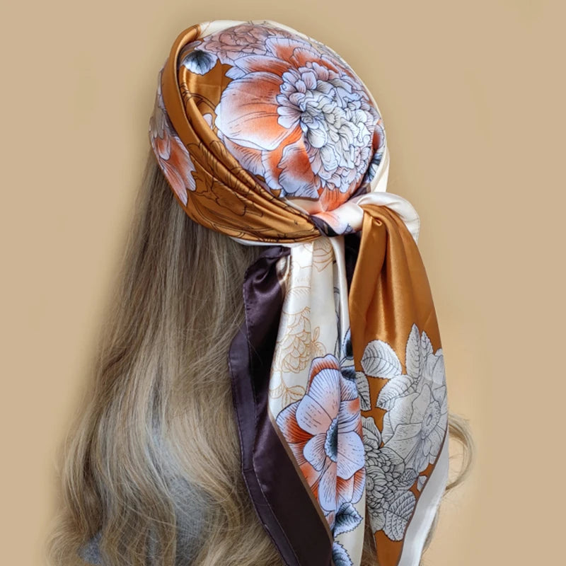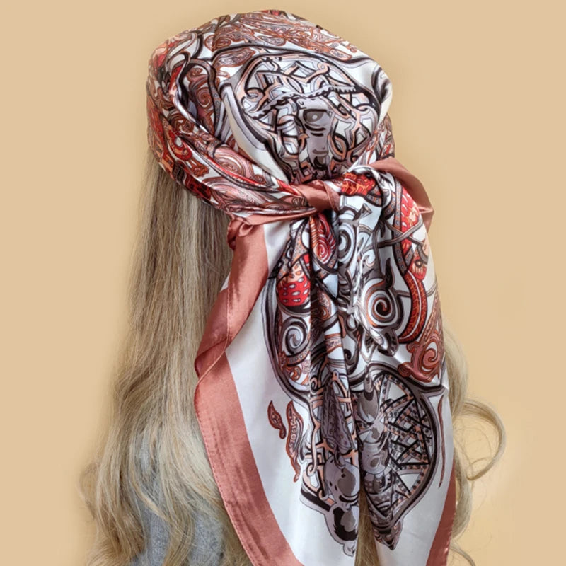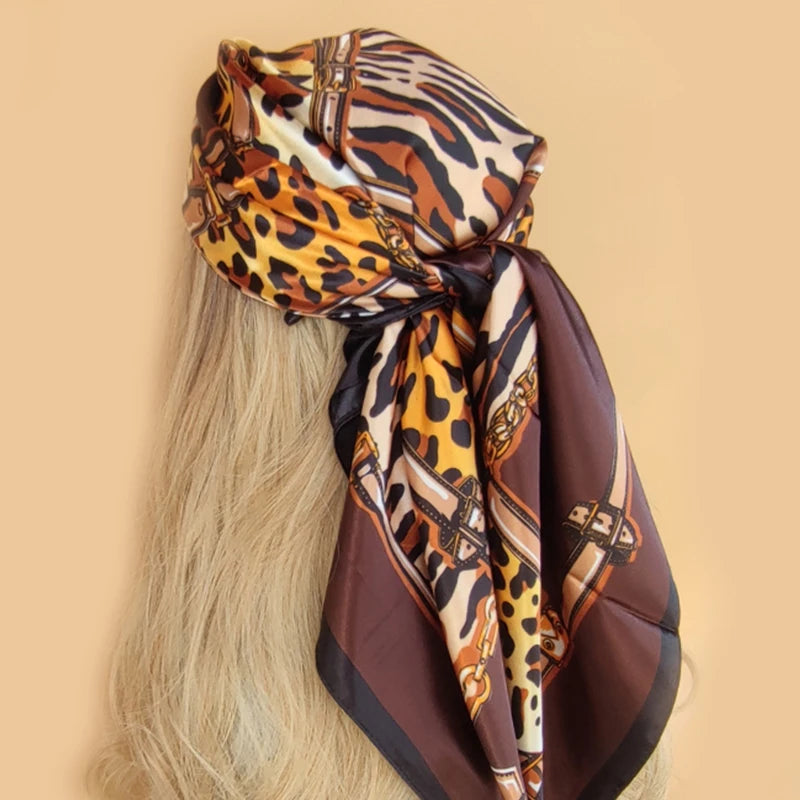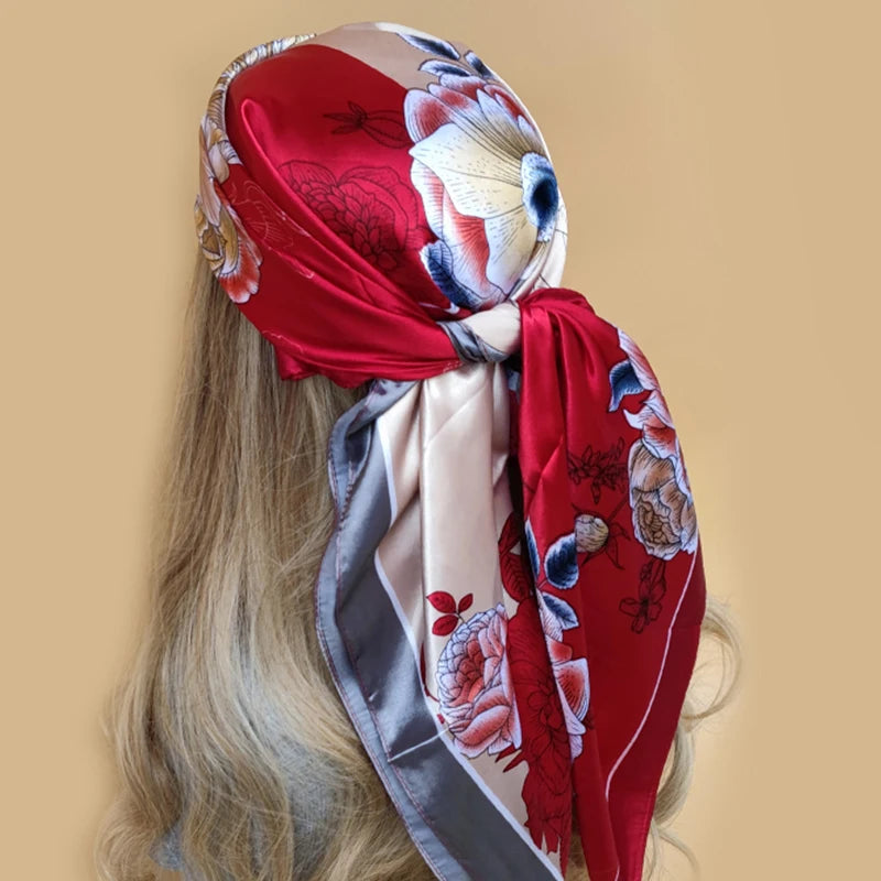 90X90CM Kerchief Fashion Print Satin Silk Scarves Popular Colour Square Shawls Luxury Sunscreen New Headcloth - 15 / 90X90CM is backordered and will ship as soon as it is back in stock.