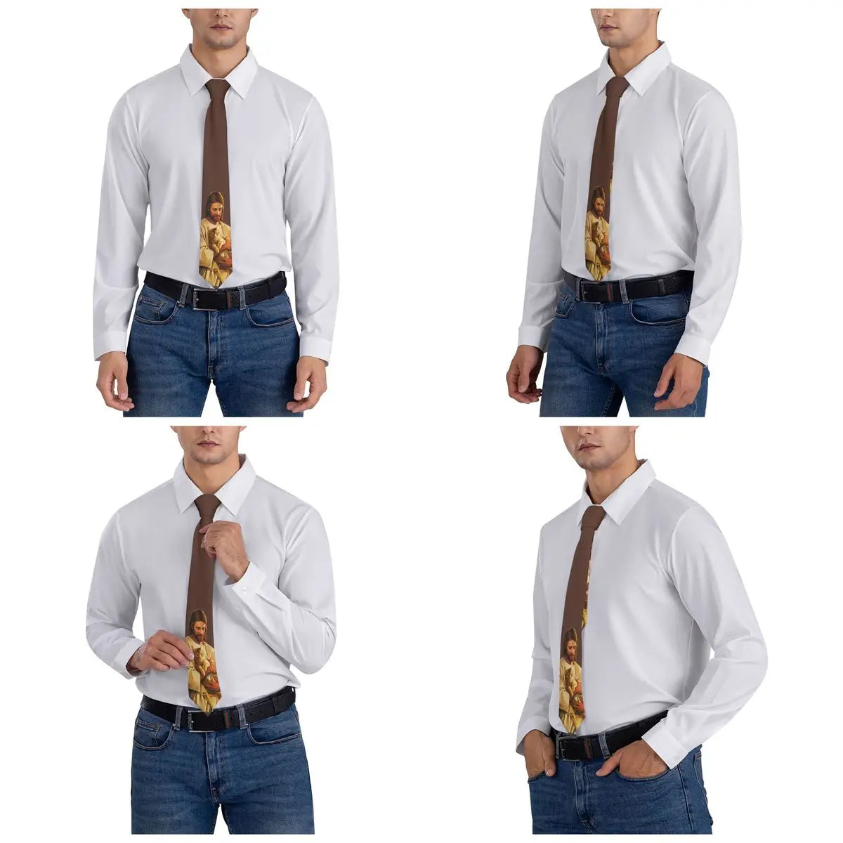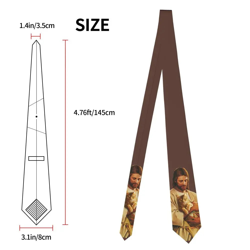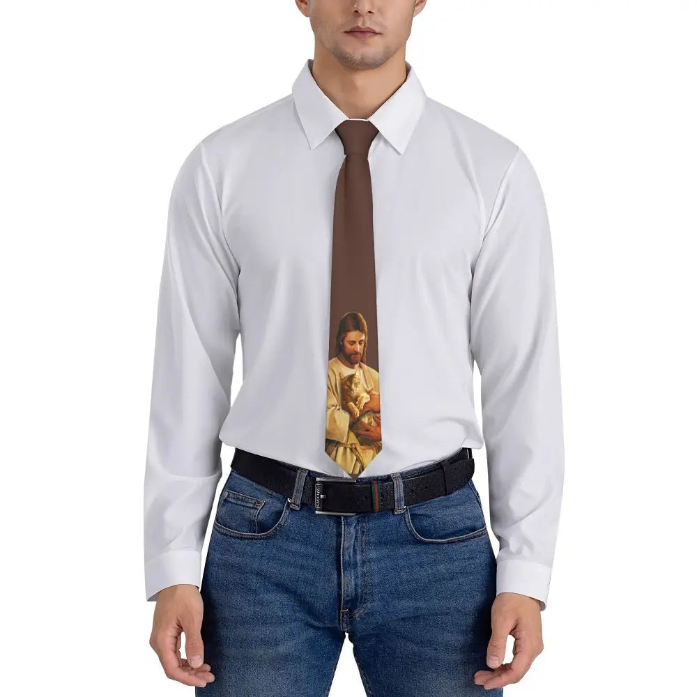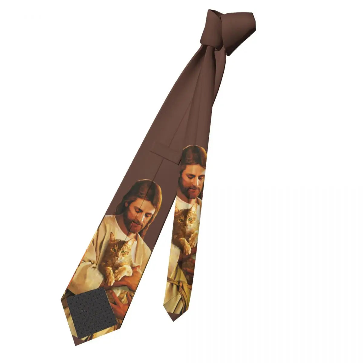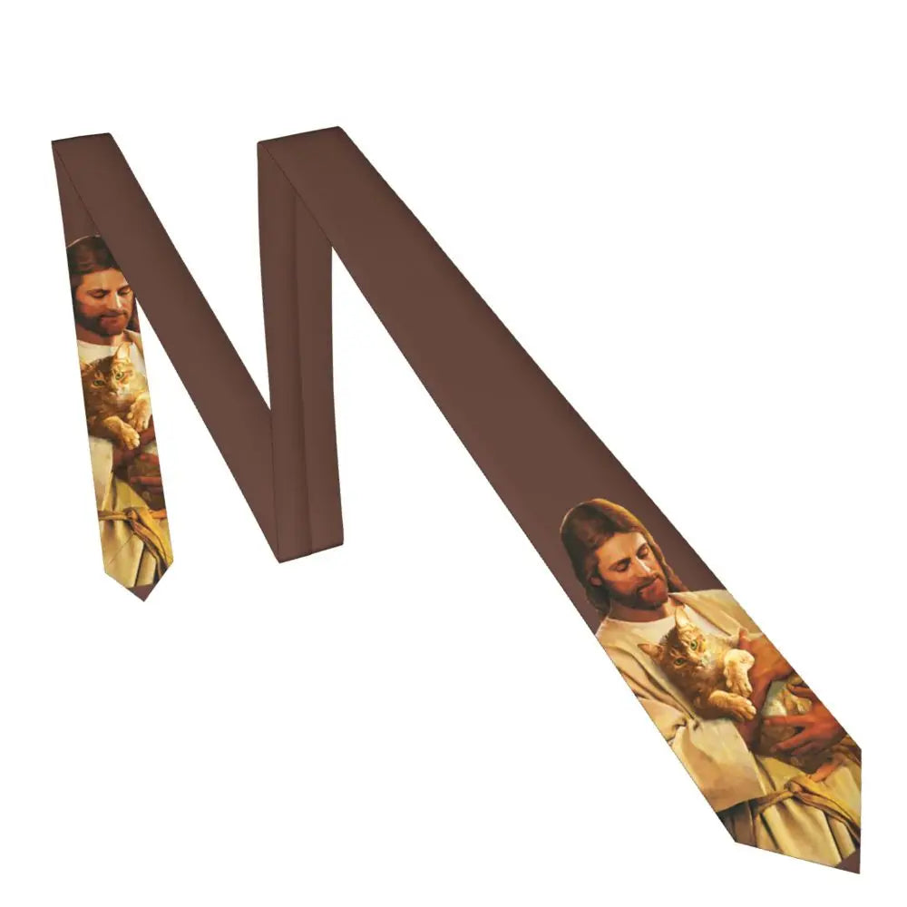Christ And His Cat Unisex Necktie Silk Polyester 8 cm Wide Jesus Neck Tie for Men Accessories Cravat Wedding Office