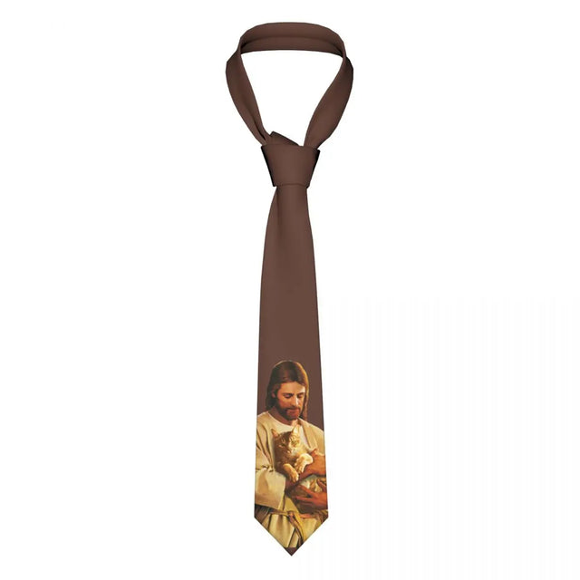 Christ And His Cat Unisex Necktie Silk Polyester 8 cm Wide Jesus Neck Tie for Men Accessories Cravat Wedding Office - black is backordered and will ship as soon as it is back in stock.
