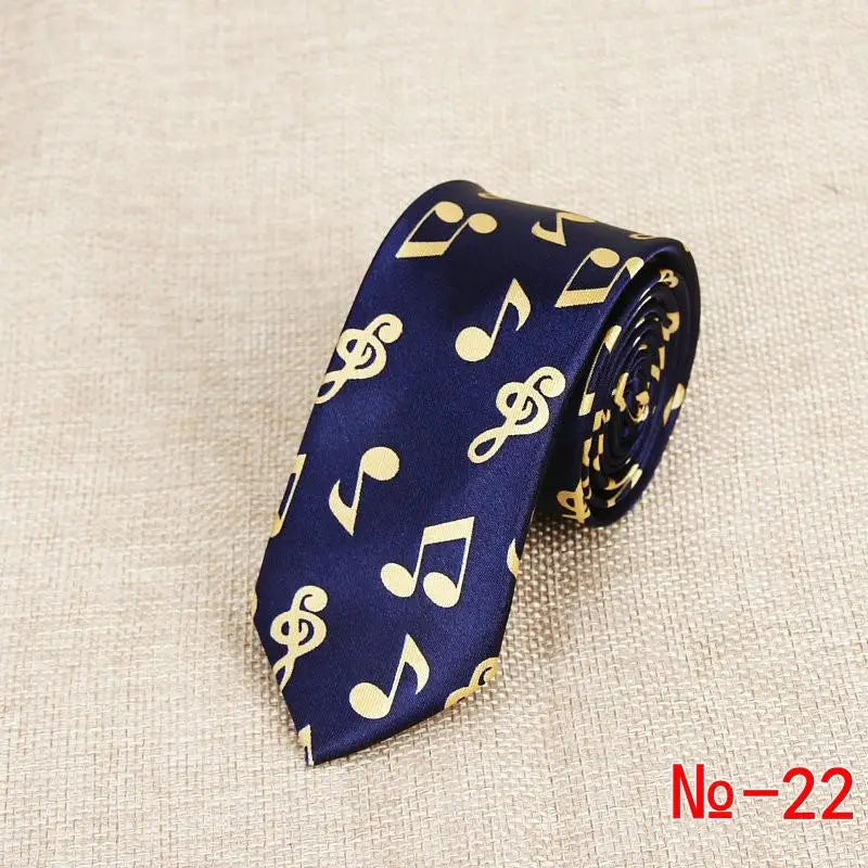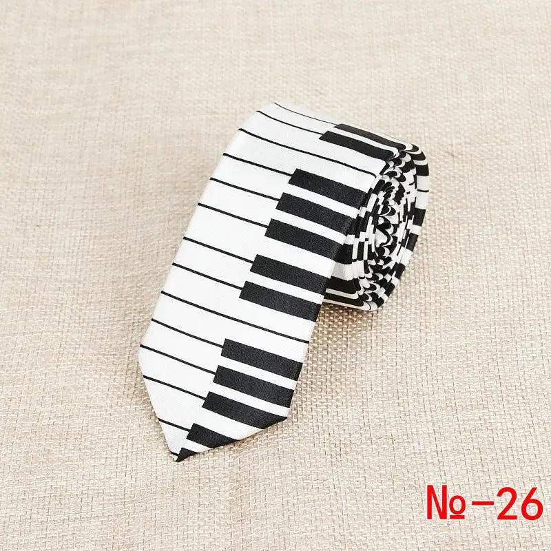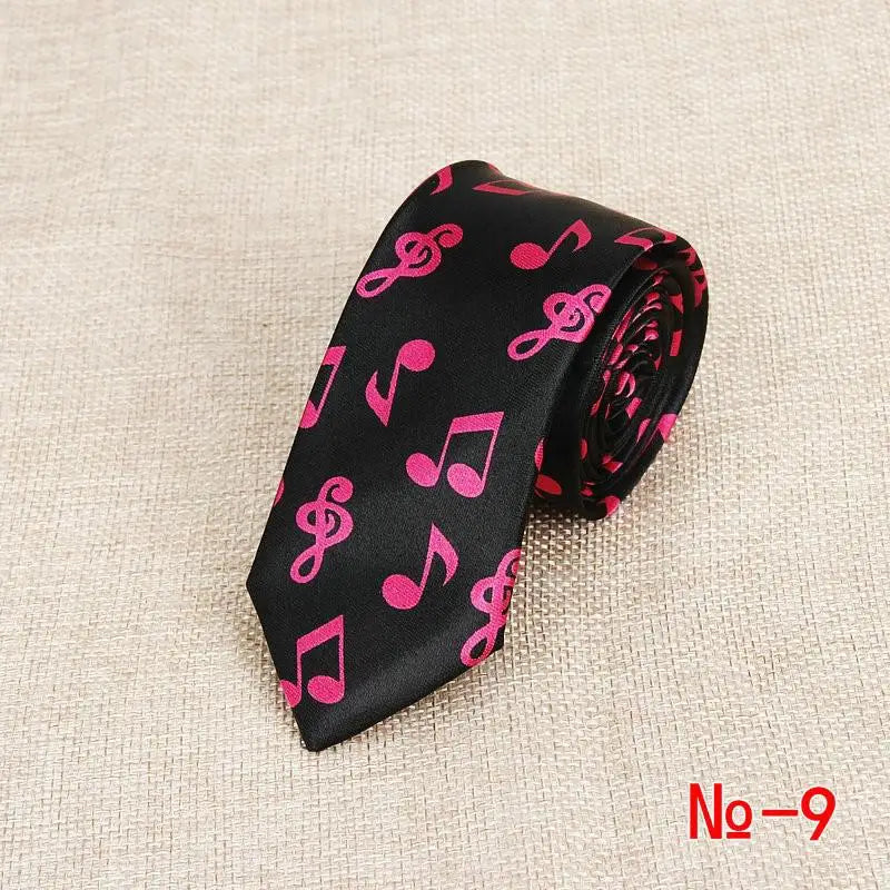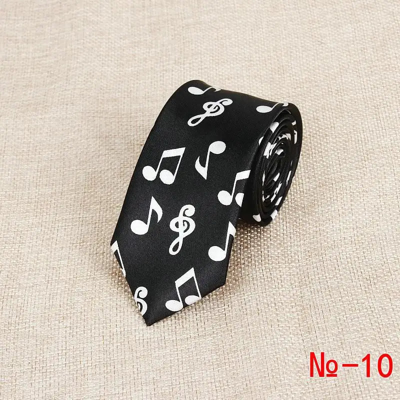 Classic Fashion Men's Skinny Tie Colorful Musical Notes Printed Piano Guitar Polyester 5cm Width Necktie Party Gift Accessory