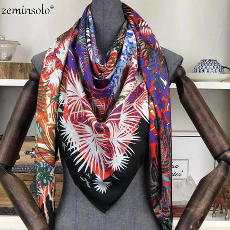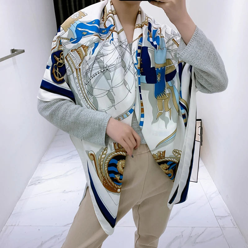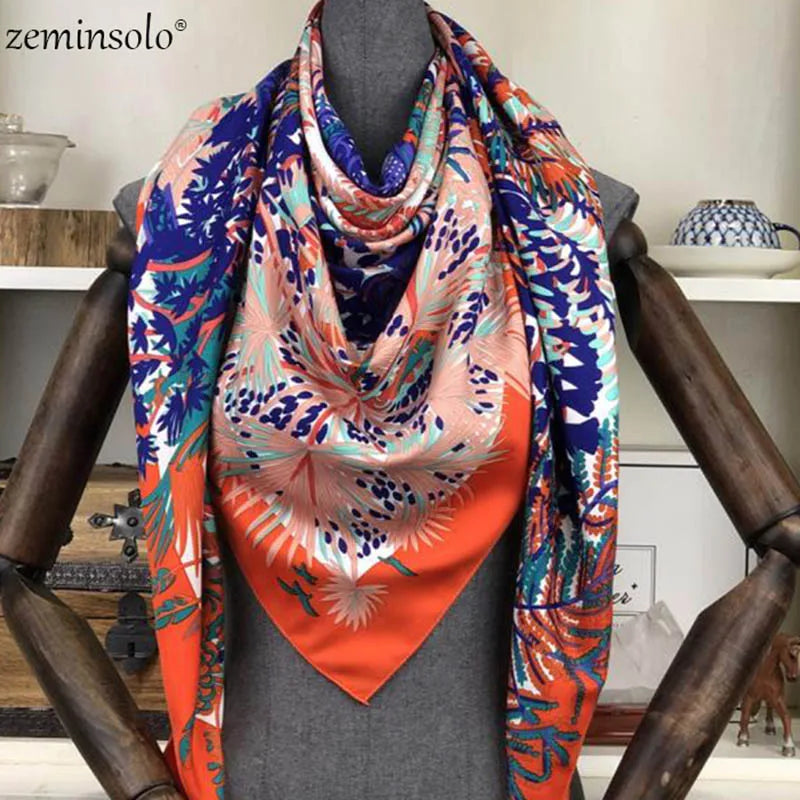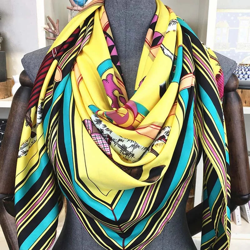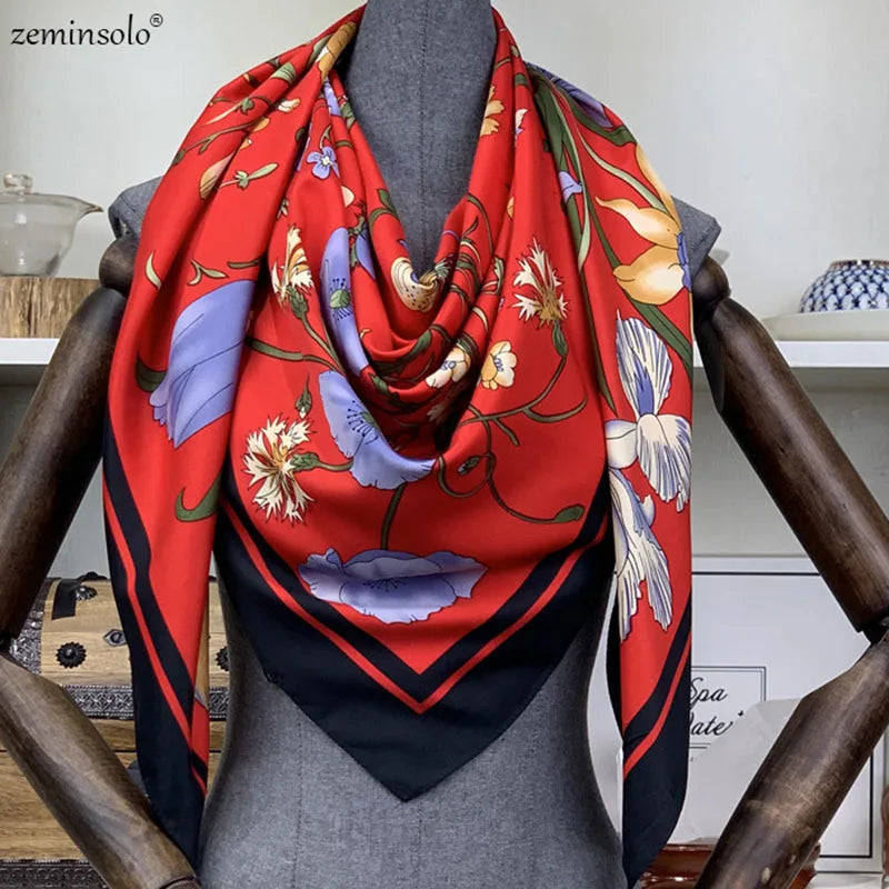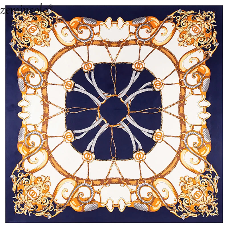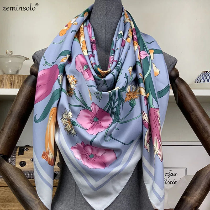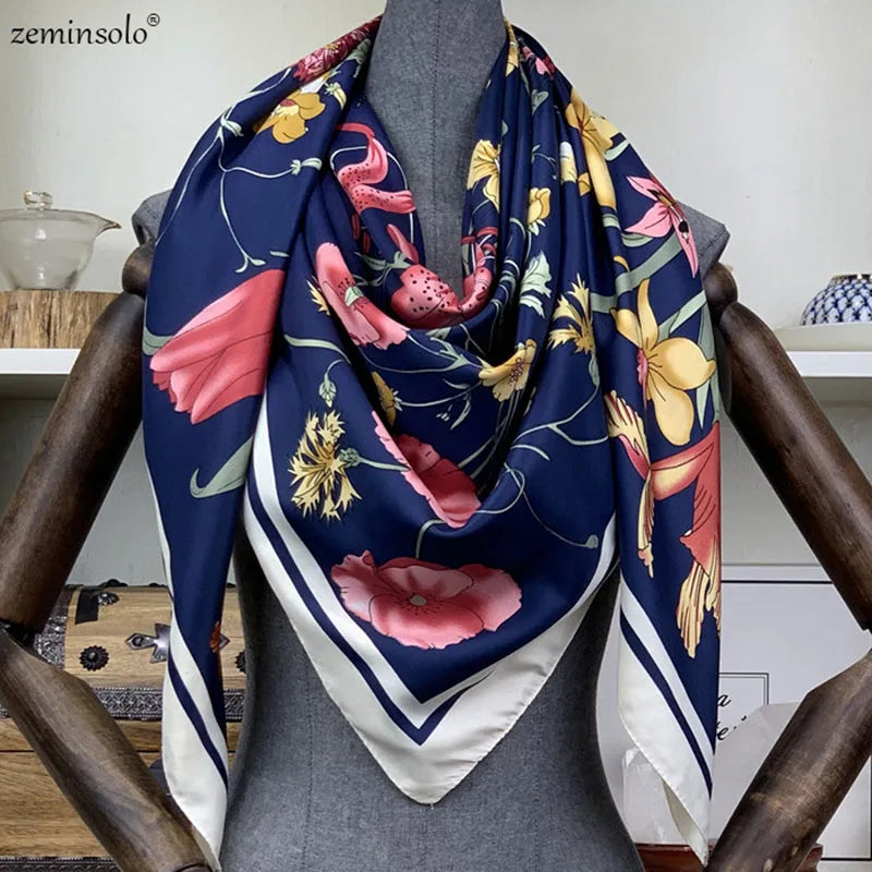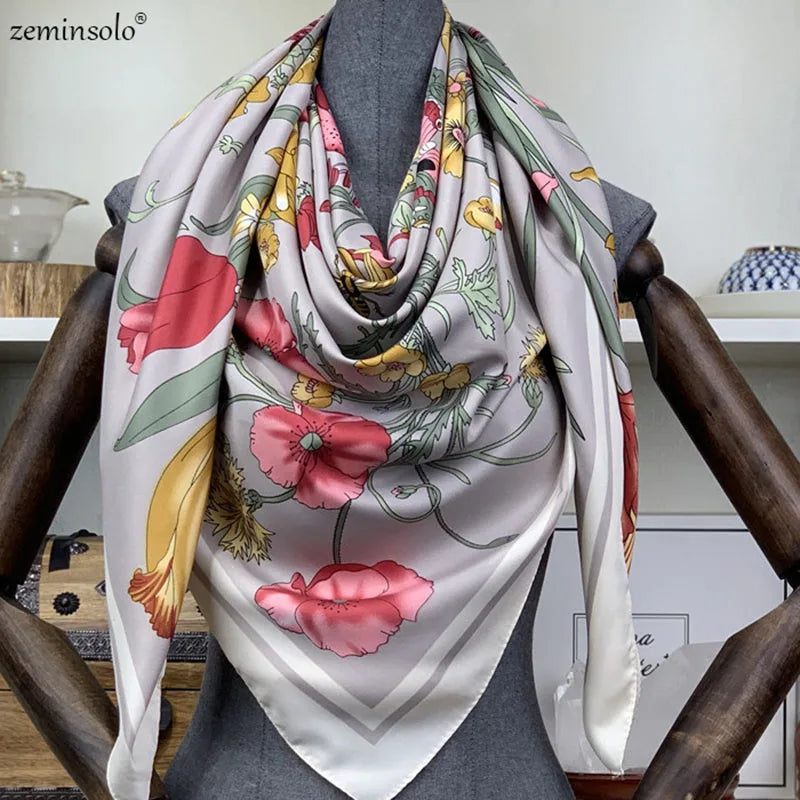 Fashion Design Square Silk Scarf Women Foulard Printed Bandana Ladies Shawl Hijab Elegant Headband Ring Scarves Wraps 130*130cm