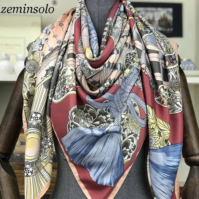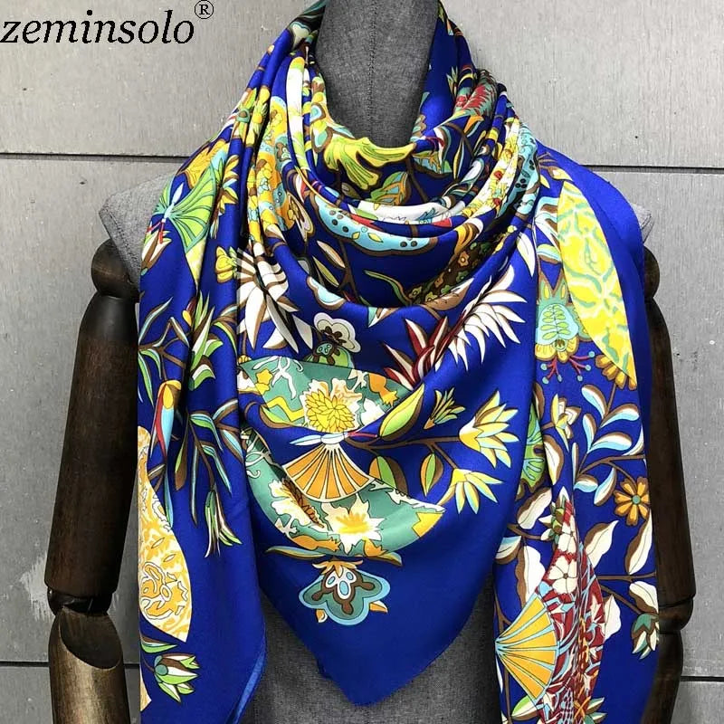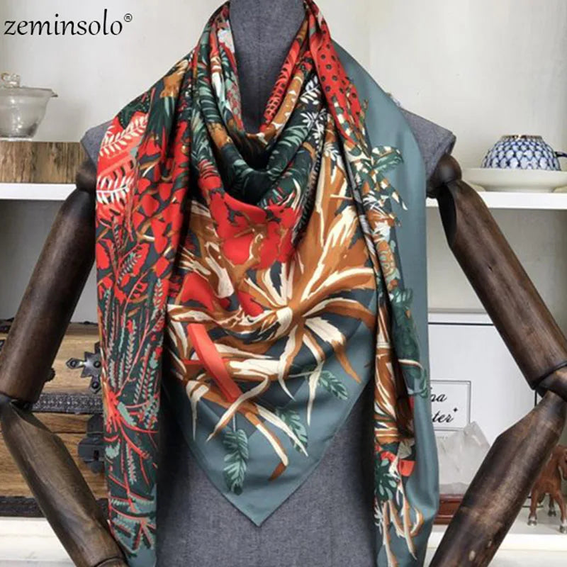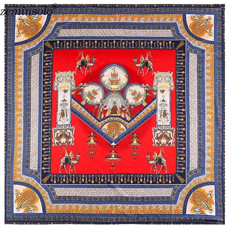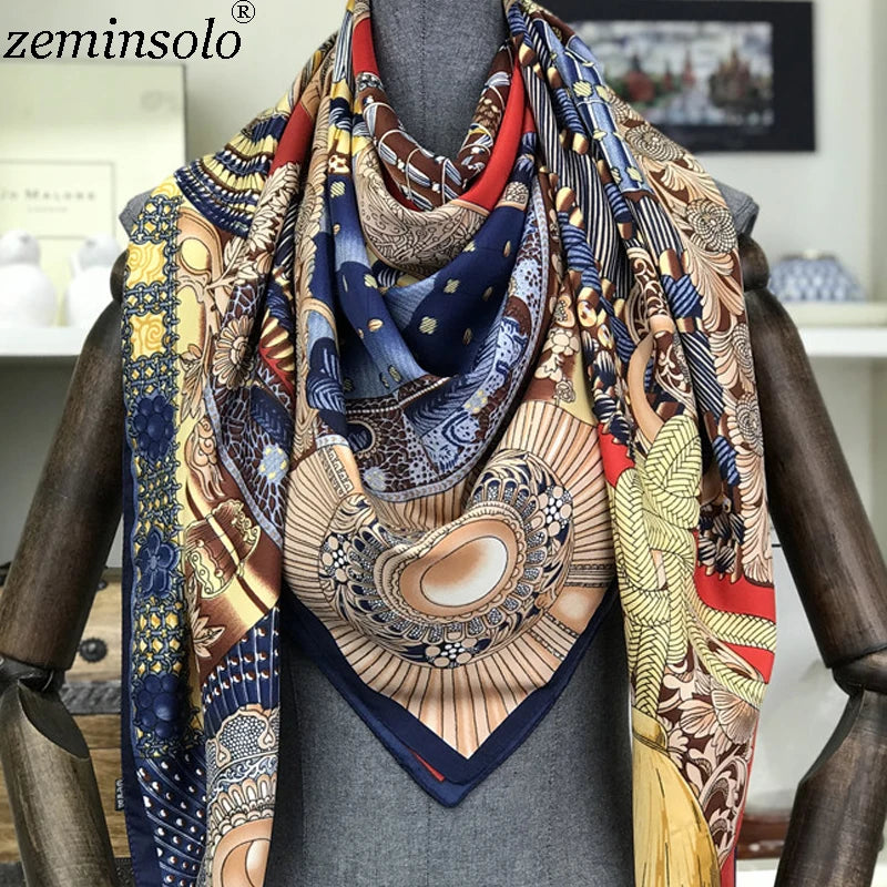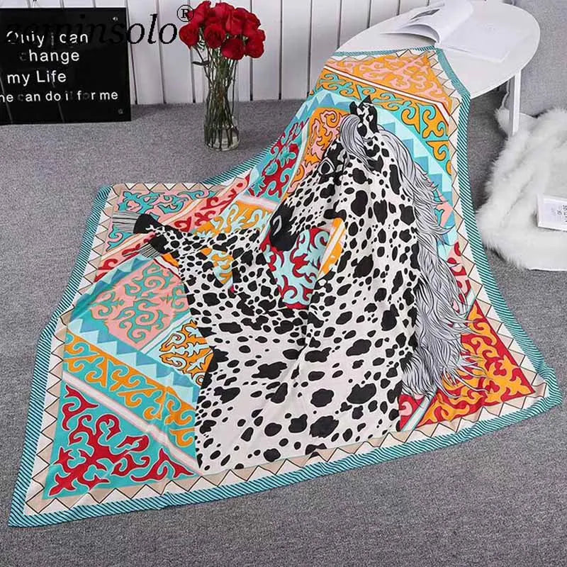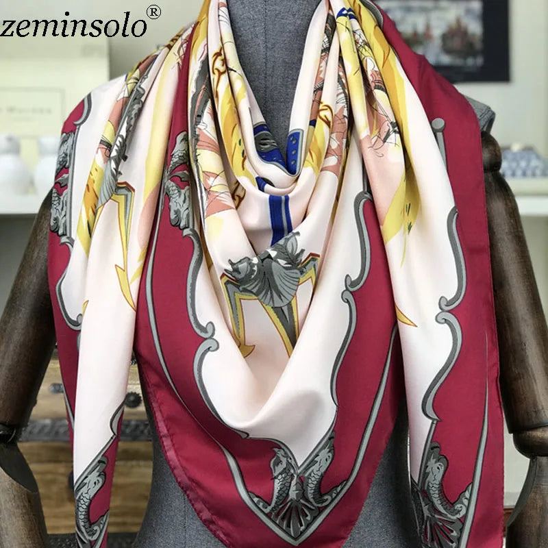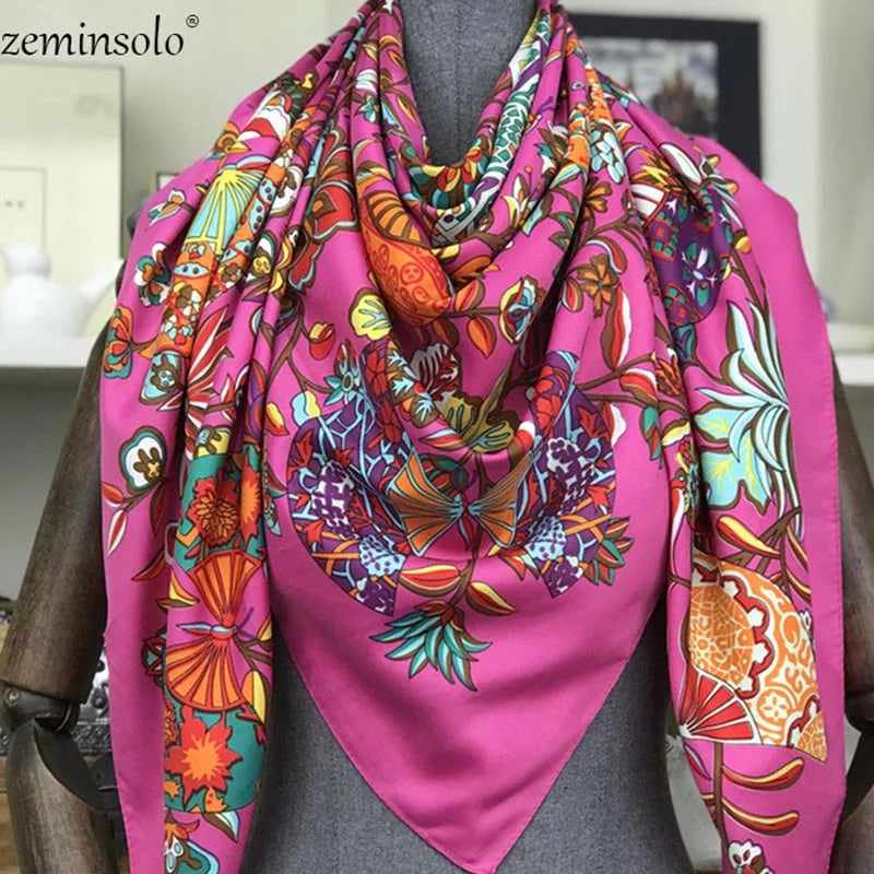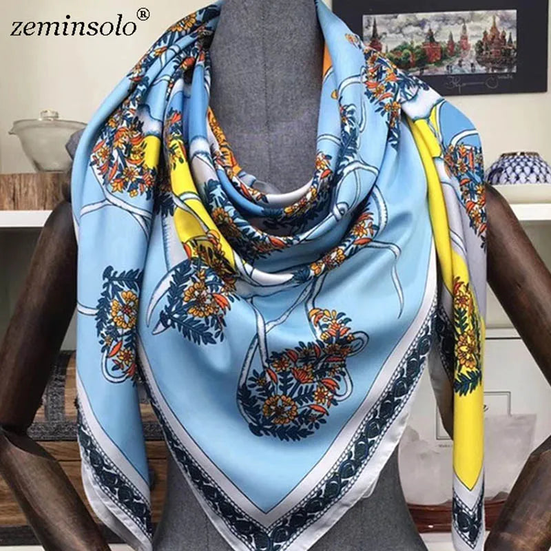 Fashion Design Square Silk Scarf Women Foulard Printed Bandana Ladies Shawl Hijab Elegant Headband Ring Scarves Wraps 130*130cm