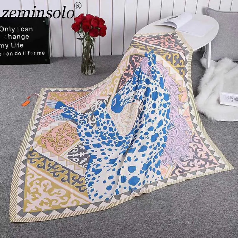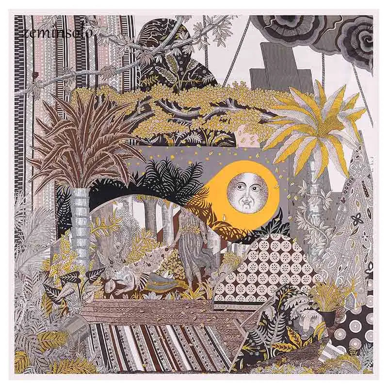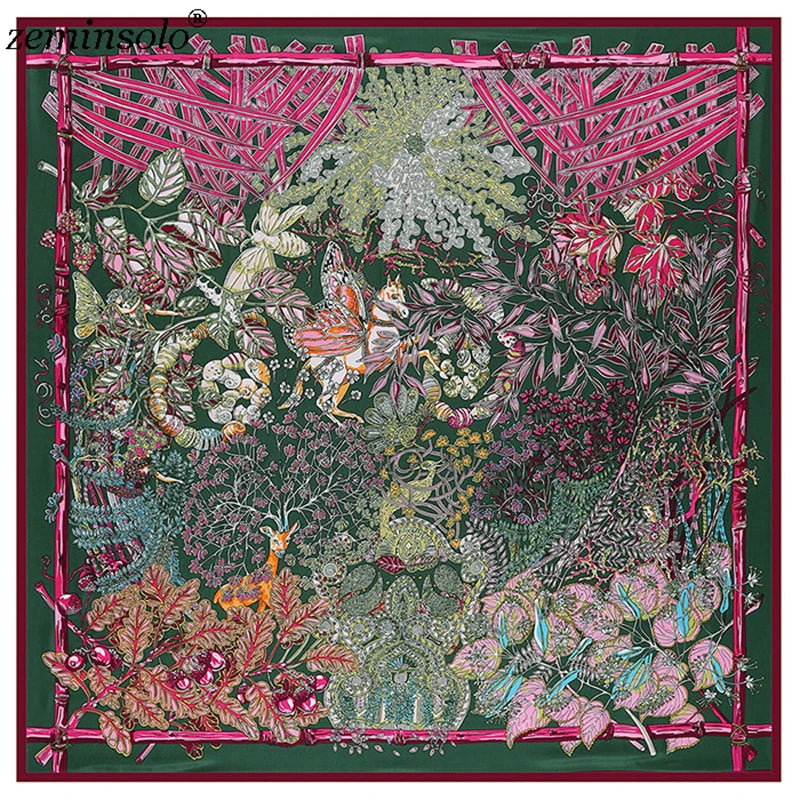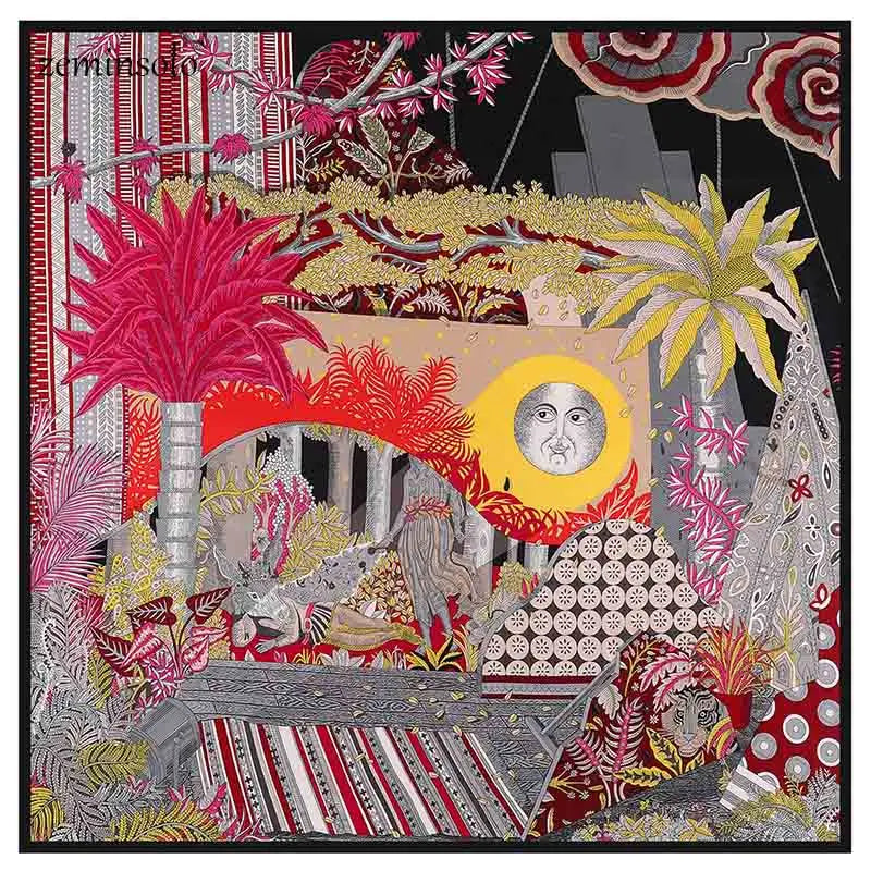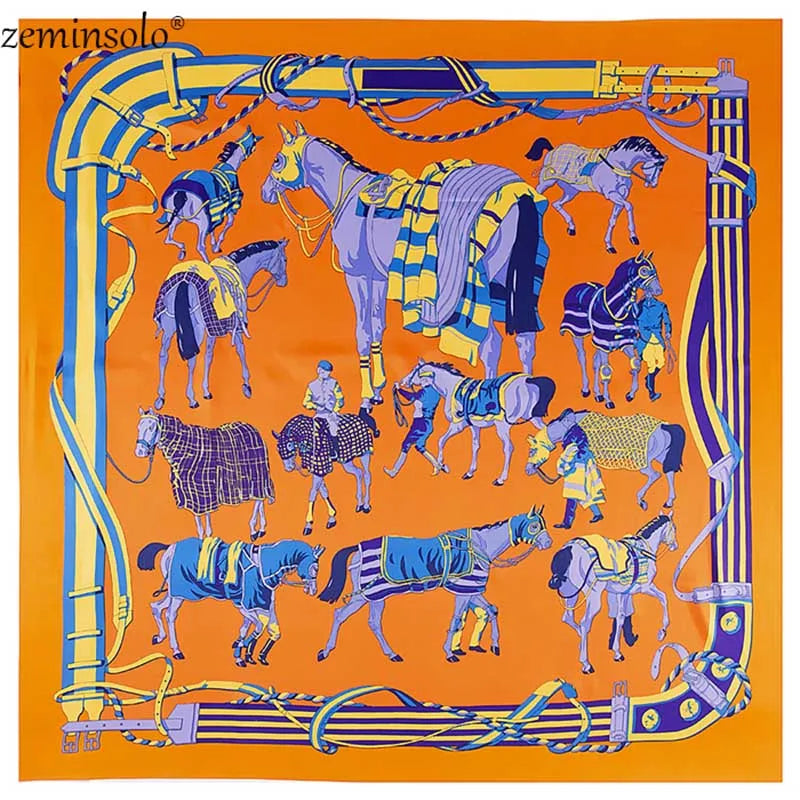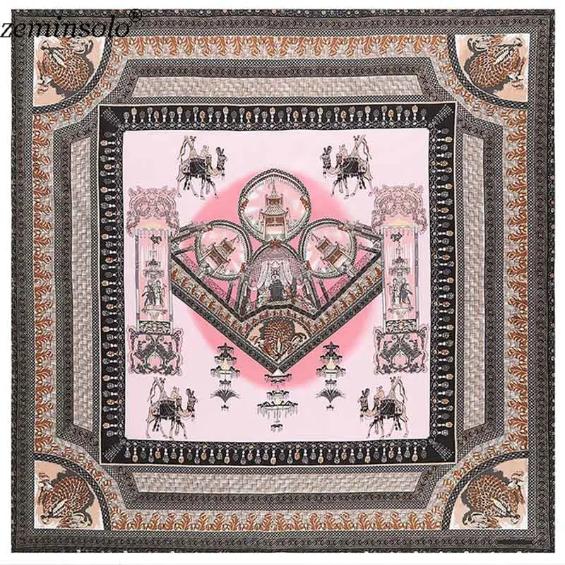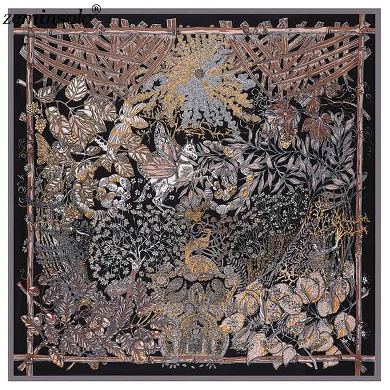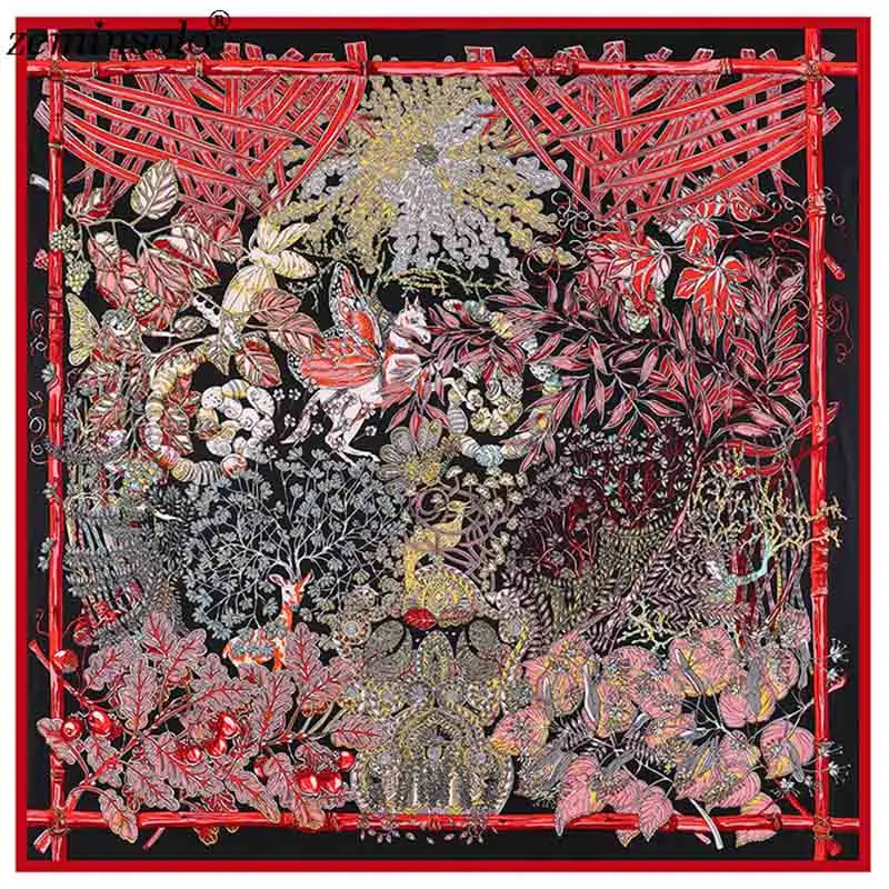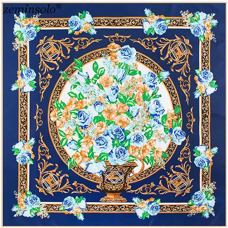 Fashion Design Square Silk Scarf Women Foulard Printed Bandana Ladies Shawl Hijab Elegant Headband Ring Scarves Wraps 130*130cm