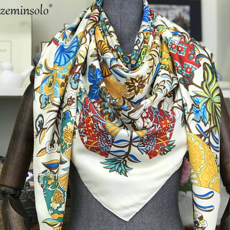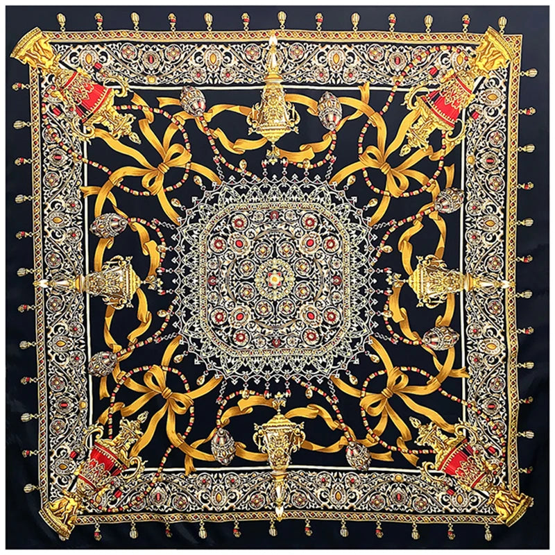 Fashion Design Square Silk Scarf Women Foulard Printed Bandana Ladies Shawl Hijab Elegant Headband Ring Scarves Wraps 130*130cm - 4 is backordered and will ship as soon as it is back in stock.