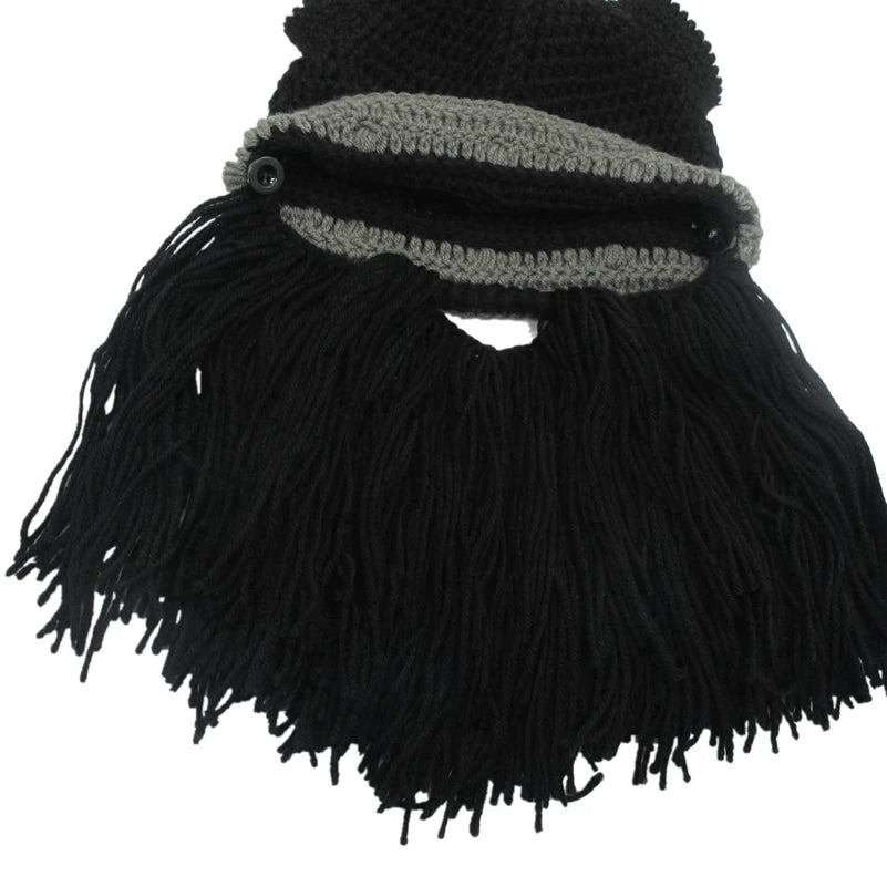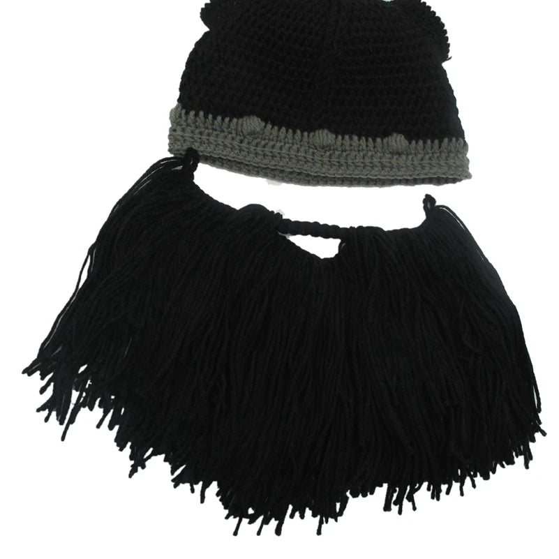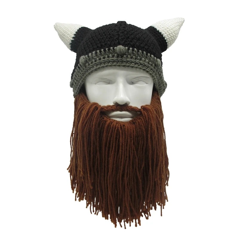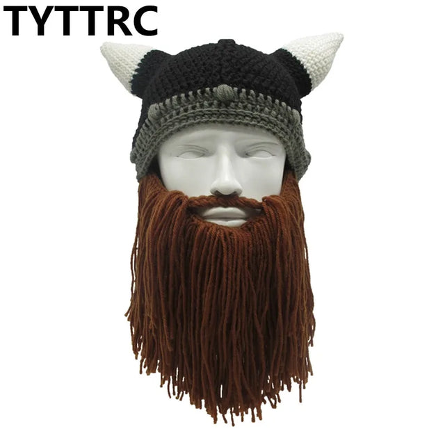 New Barbarian Viking Beanie Beard Horn Hat Handmade Knit Winter Warm Cap Men Women Birthday Cool Funny Gag Party Christmas