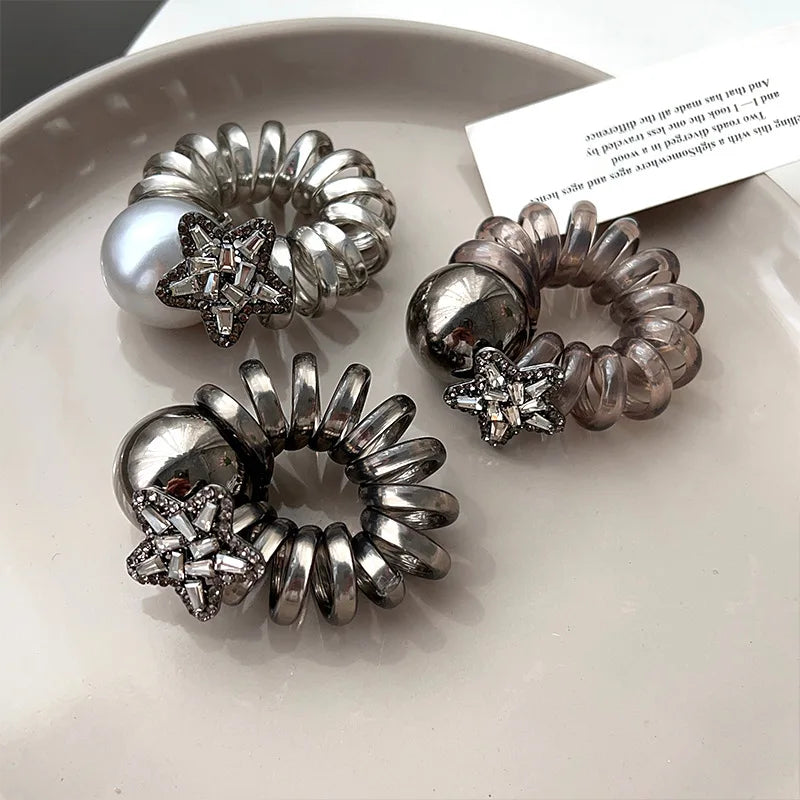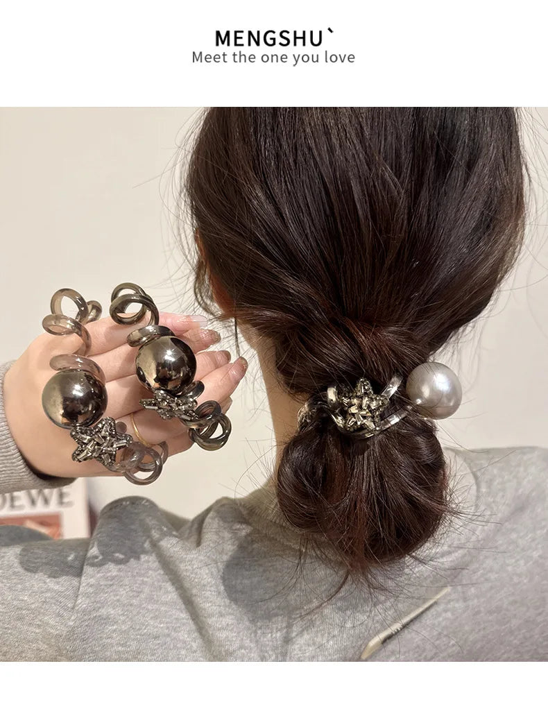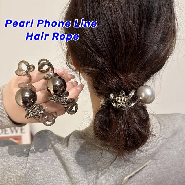 New Telephone Line Elastic Hair Rope,Advanced Sense Pearl Hair Rope,Hair Loop For Women,High Elasticity Head Rope,Hair Bands.