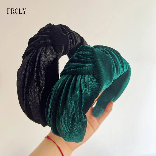 PROLY New Fashion Hairband For Women Solid Color Wide Side Headband Warm Canary Velvet Turban Winter Hair Accessories Wholesale